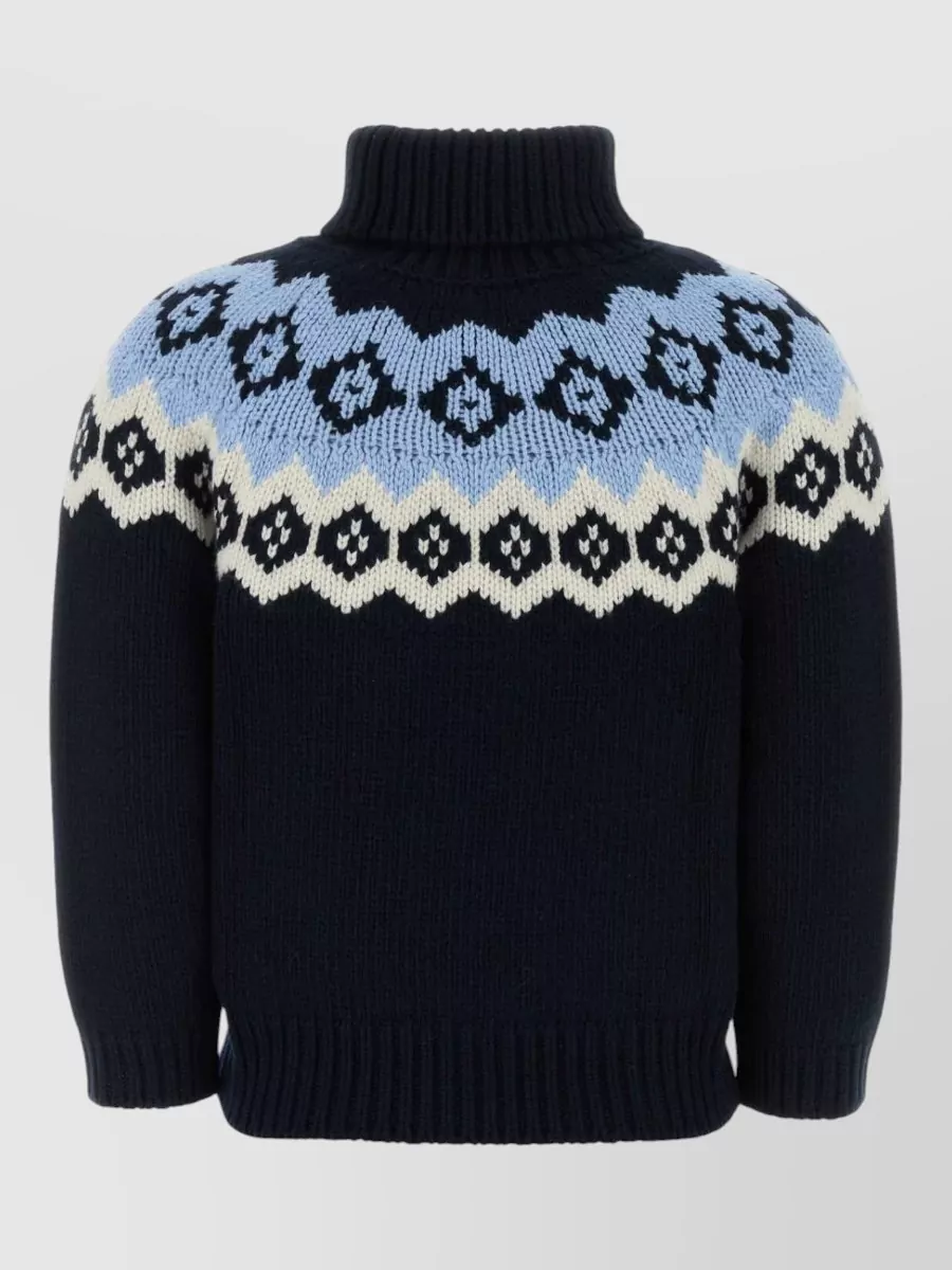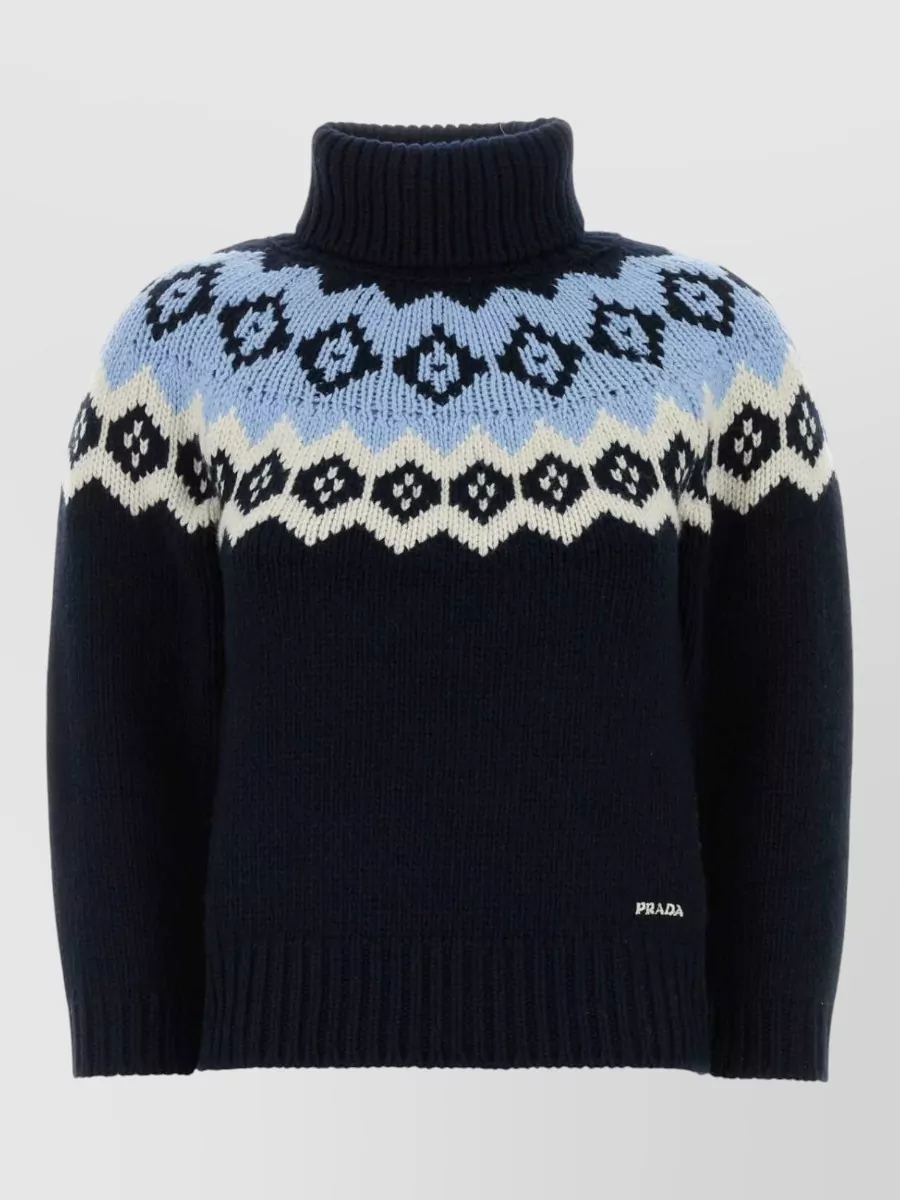 Prada wool blend sweater patterned turtleneck ribbed trims