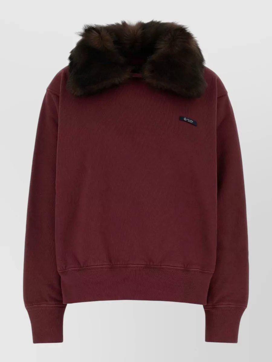 Prada cotton sweatshirt faux fur collar