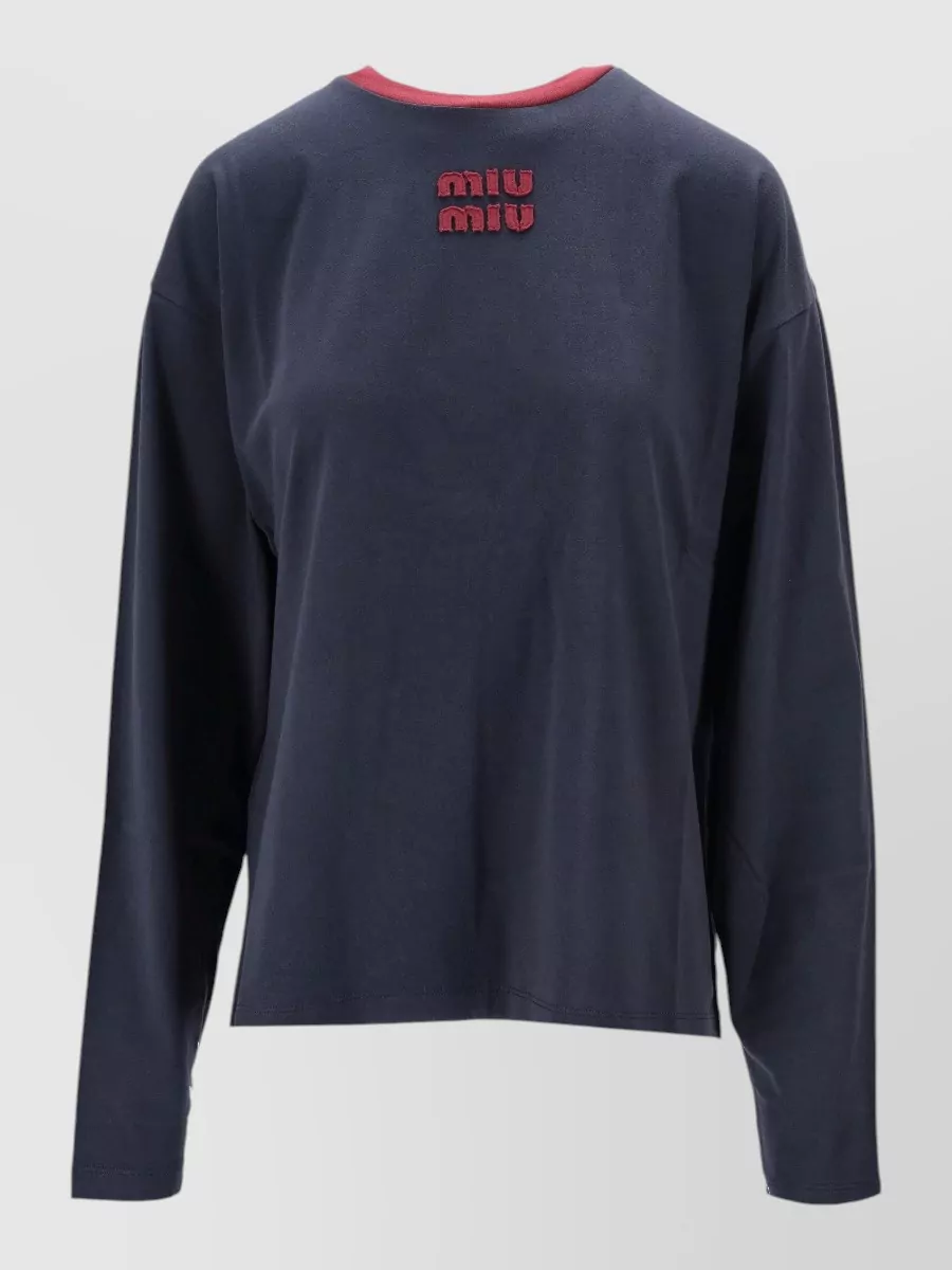 Miu Miu long sleeve jersey top crew neck trim