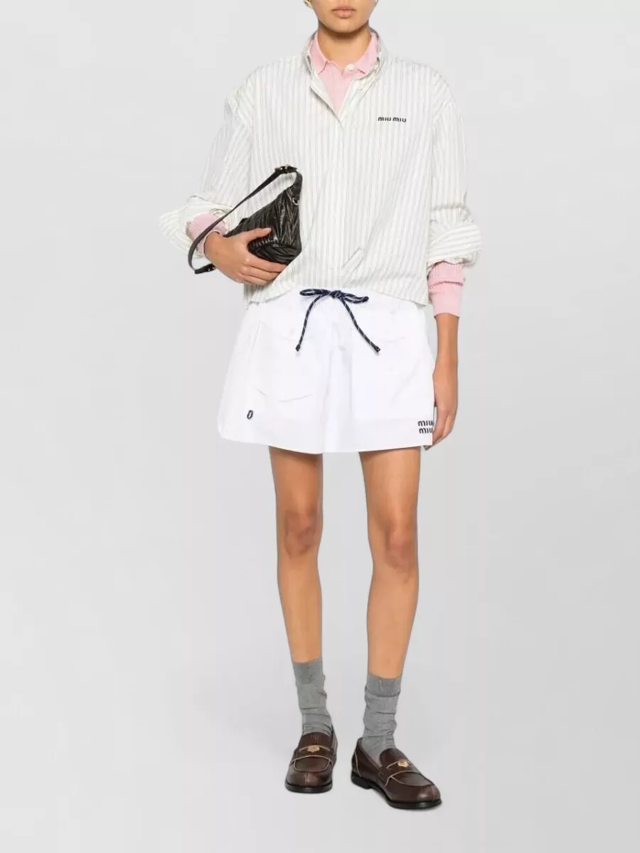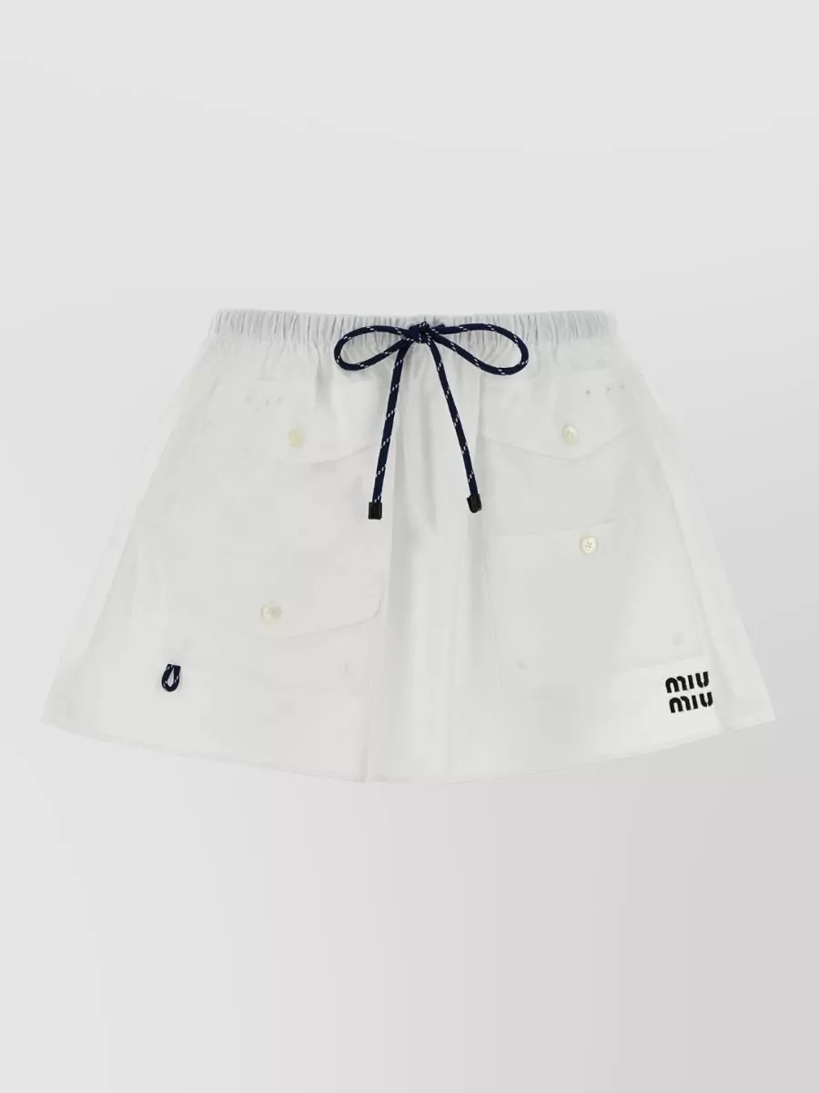 Miu Miu poplin skirt elastic waist gathered pockets hem