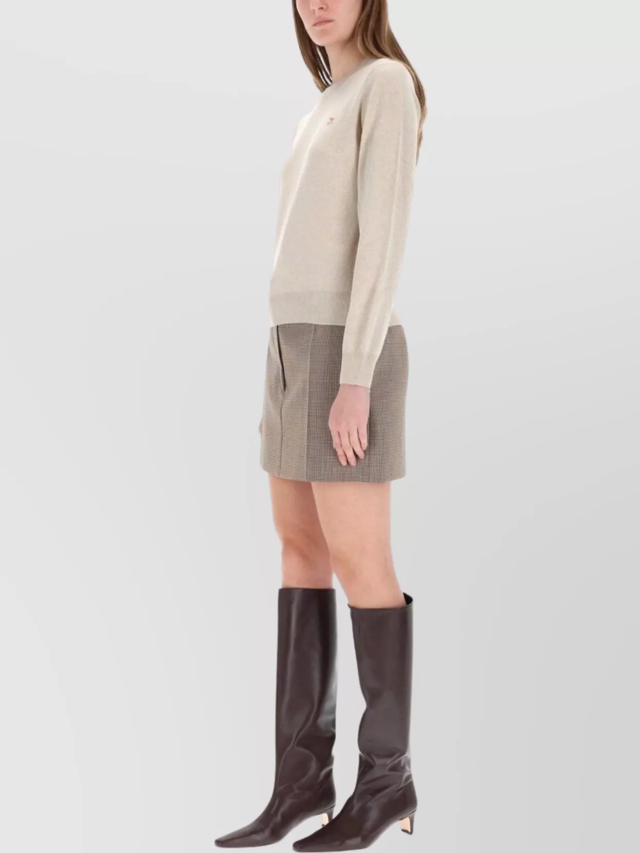 Wool crew neck jumper with ribbed cuffs
