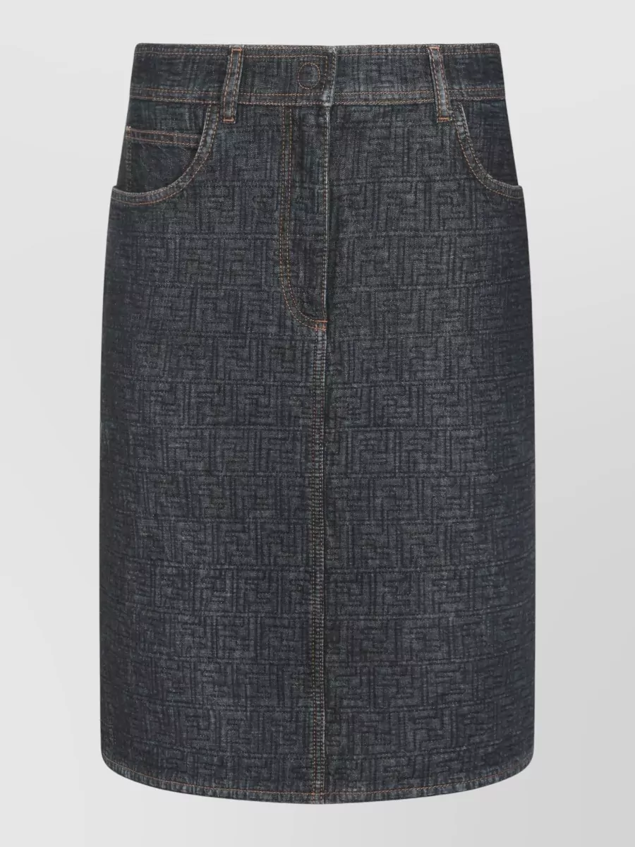 Fendi quilted denim midi skirt pockets
