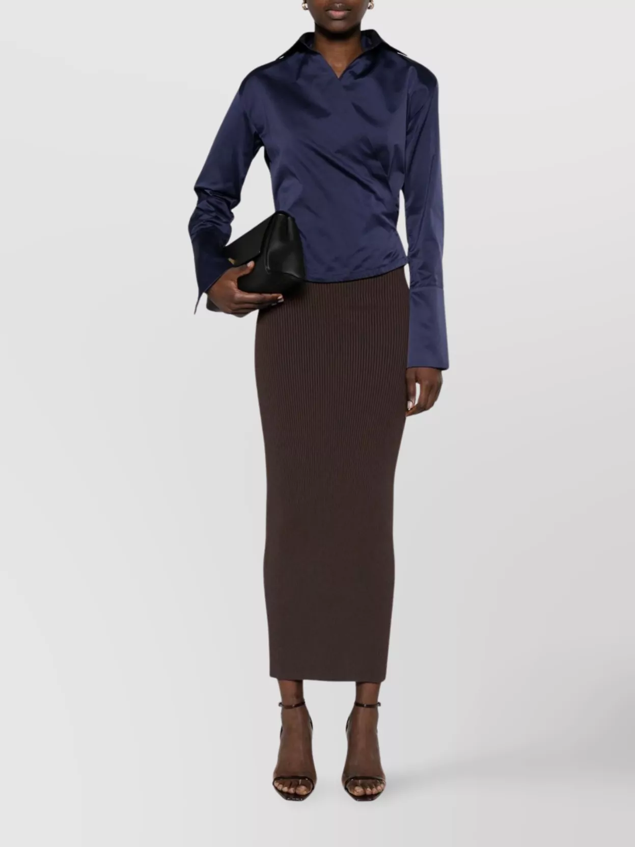 'denver' high-waisted knee-length skirt with front slit and side pockets