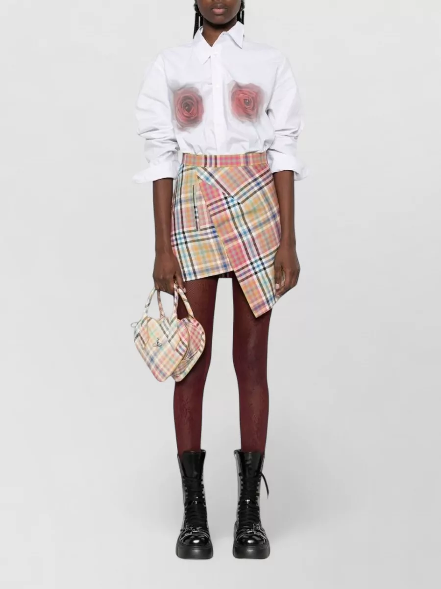 Vivienne Westwood plaid asymmetric hem knee length midi skirt