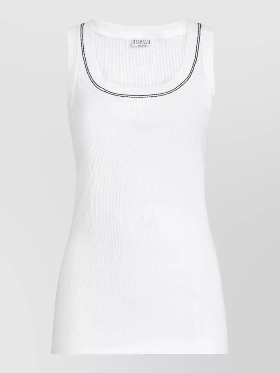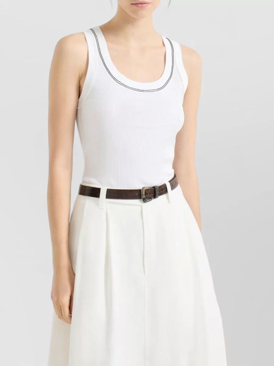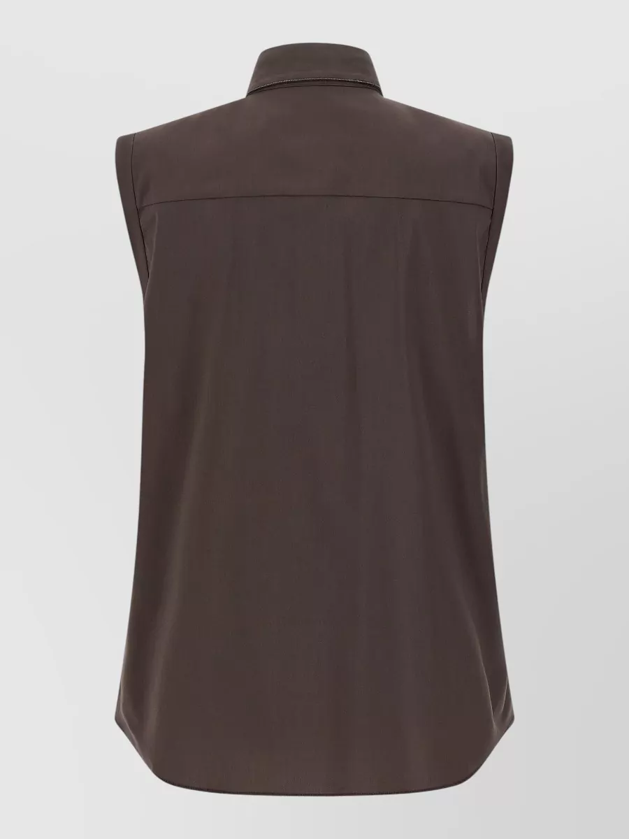 sleeveless stretch cotton poplin shirt with contrast stitching