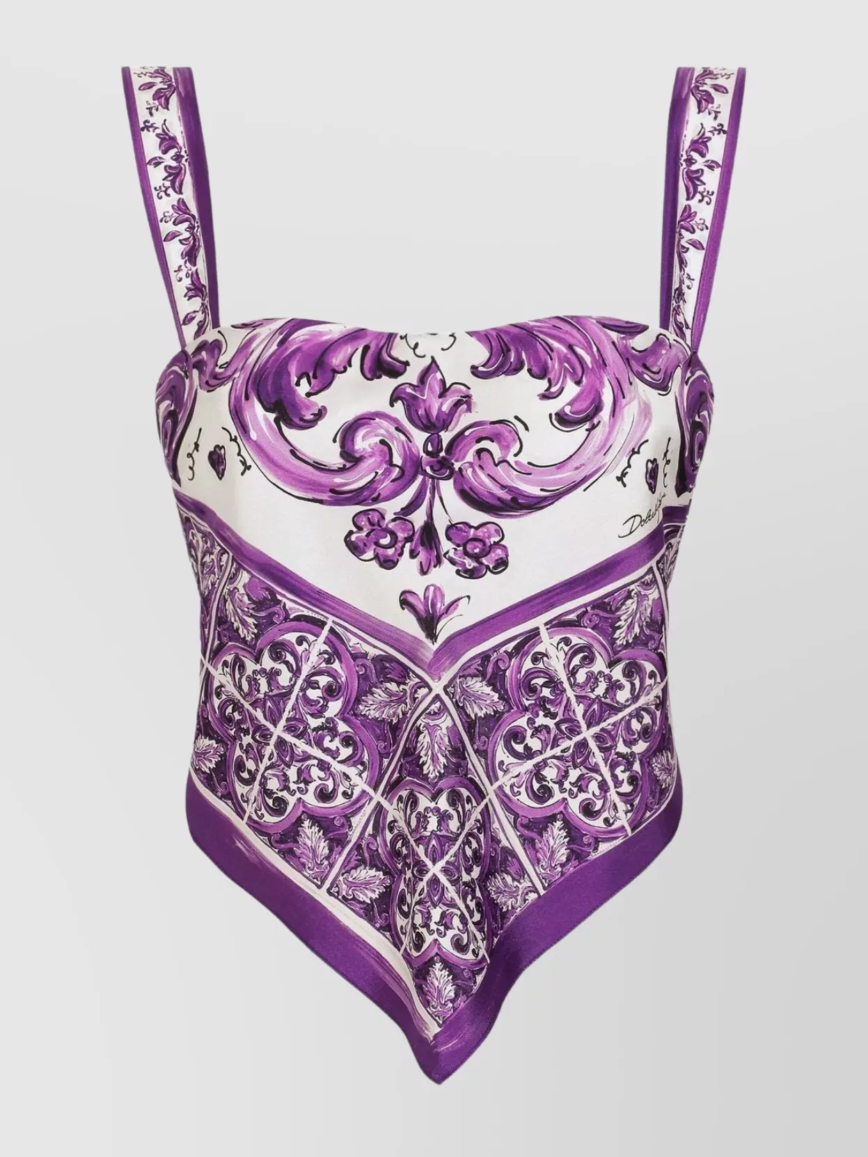 Dolce&Gabbana silk top with majolica print and handkerchief hem