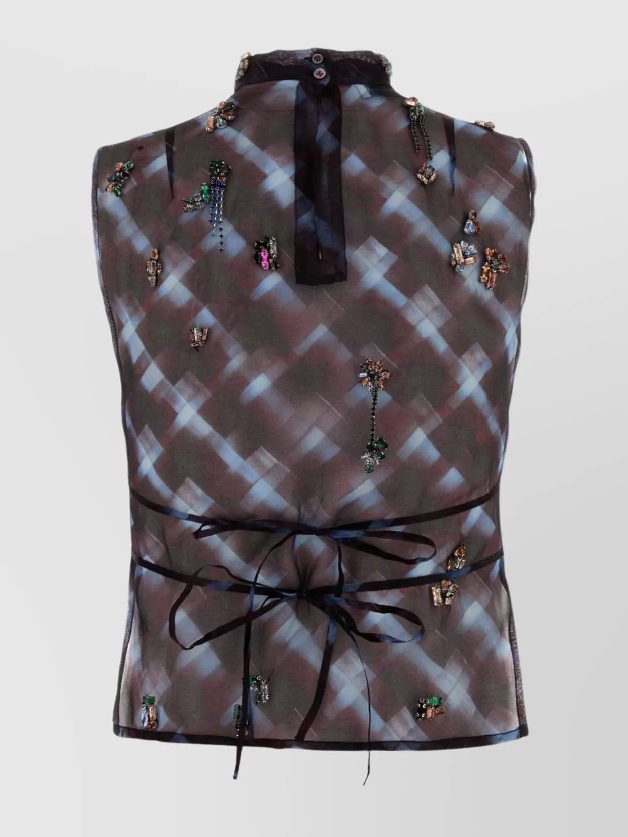 Dries Van Noten sequined high neck blouse with sheer fabric