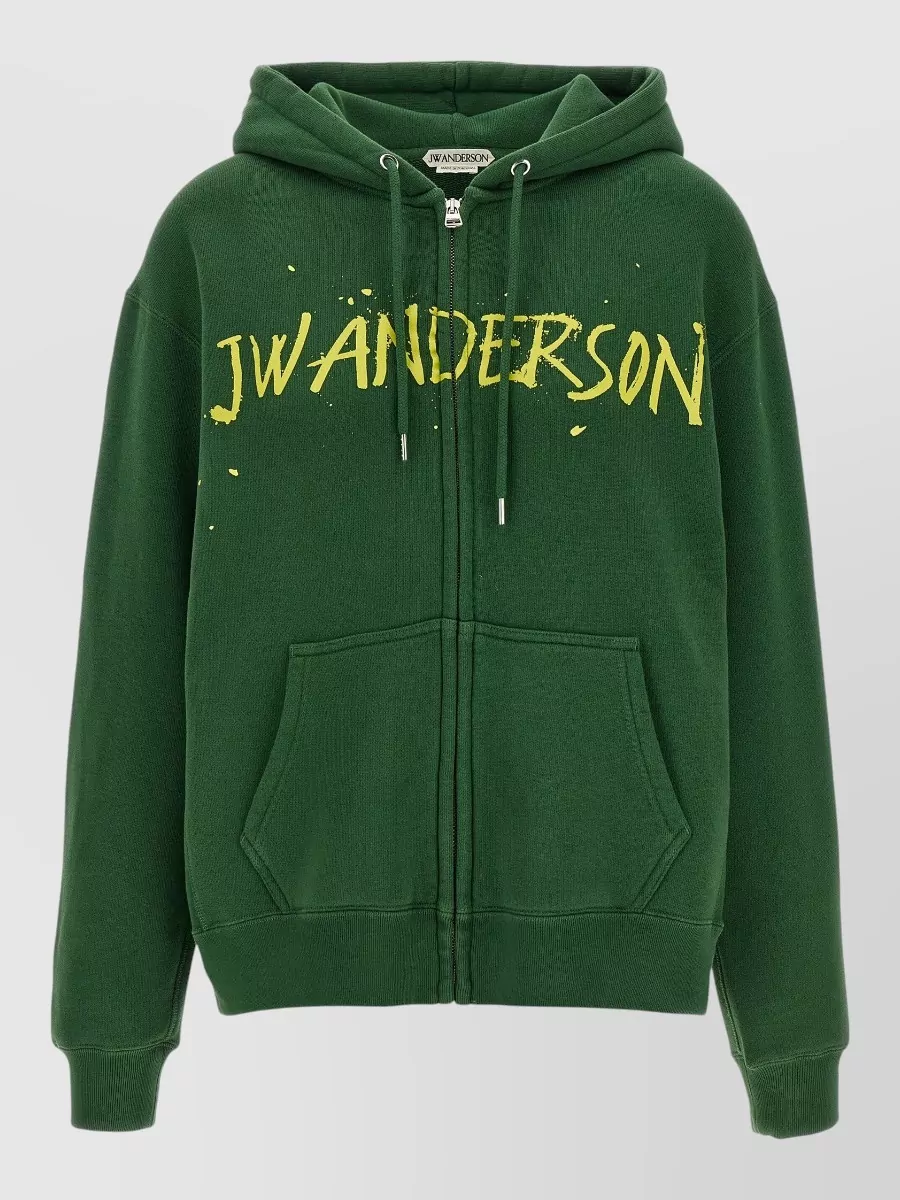 JW Anderson hoodie print hood kangaroo pocket ribbed cuffs