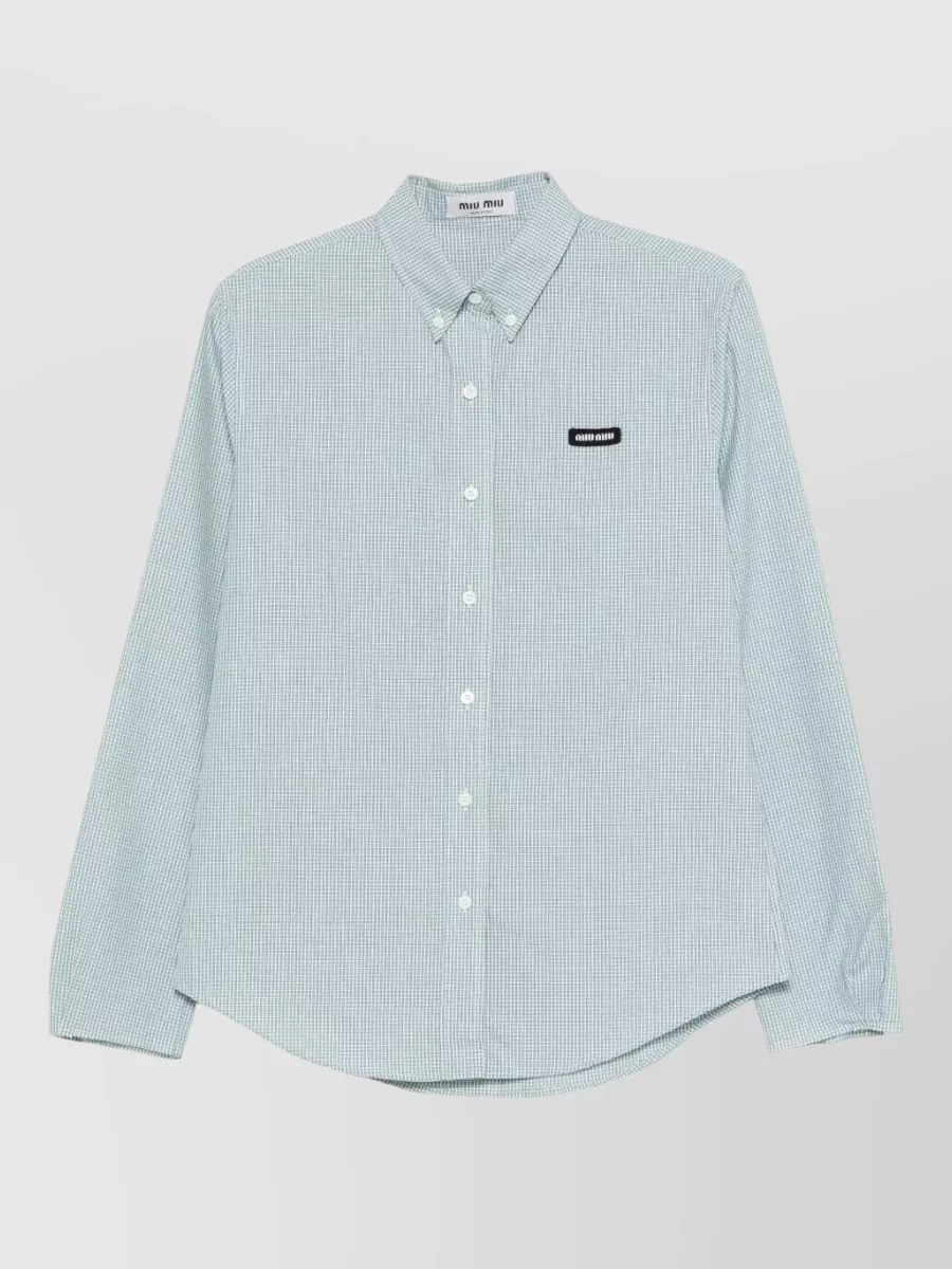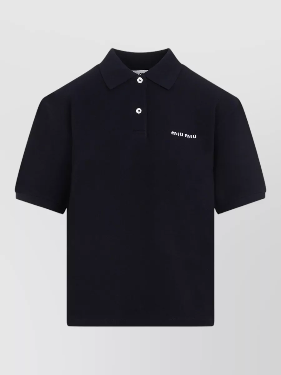 Miu Miu wool polo shirt with argyle pattern and ribbed hem