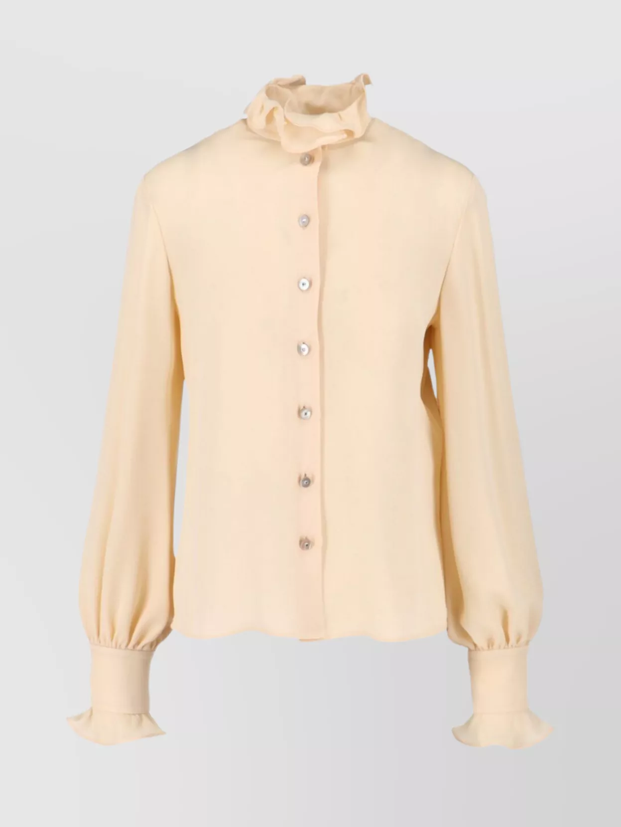 Valentino long sleeve top featuring ruffled collar and cuffs