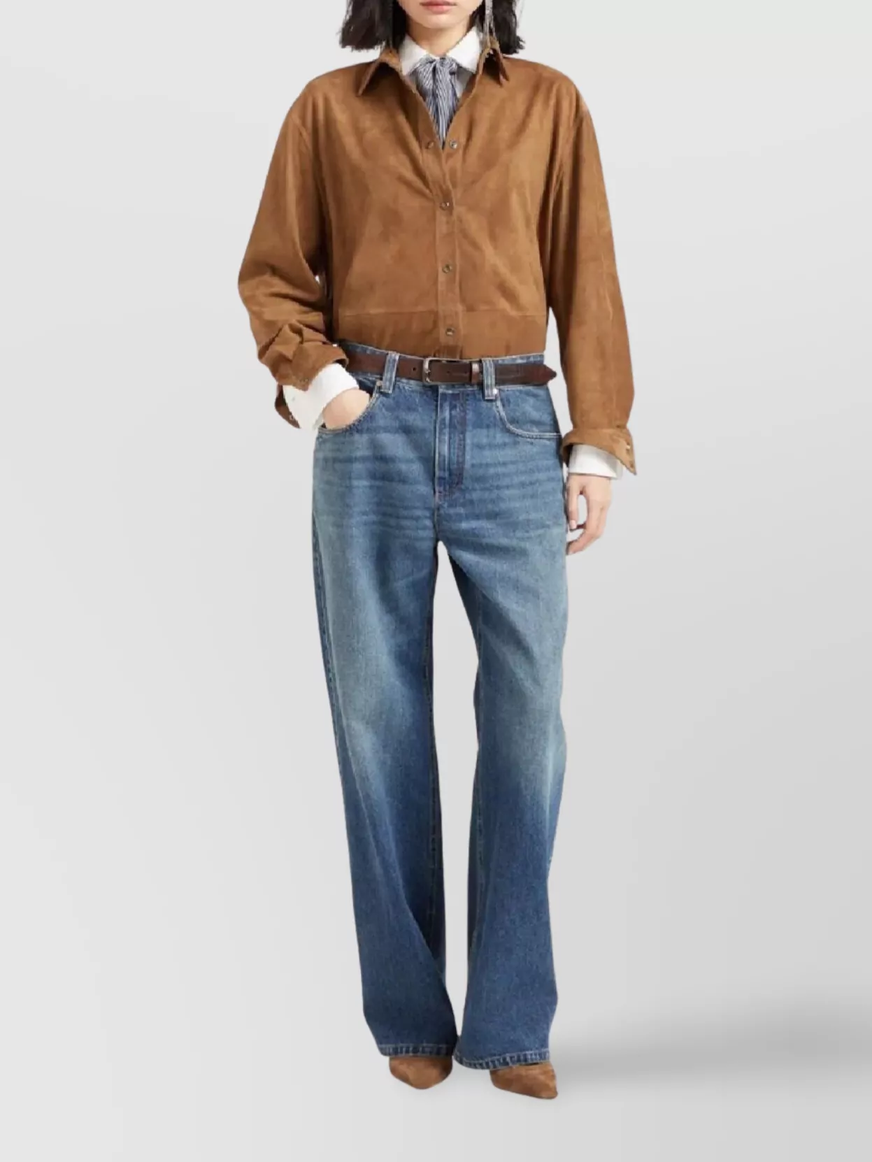 Brunello Cucinelli straight fit denim jeans with leather patch