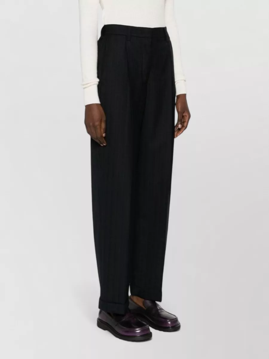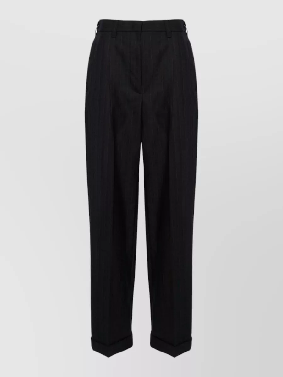 high-rise pinstripe wool tailored trousers