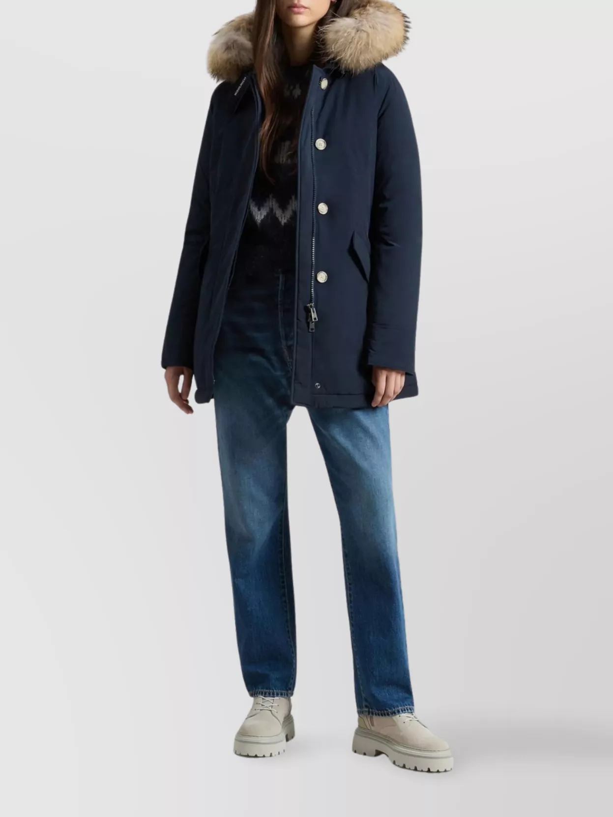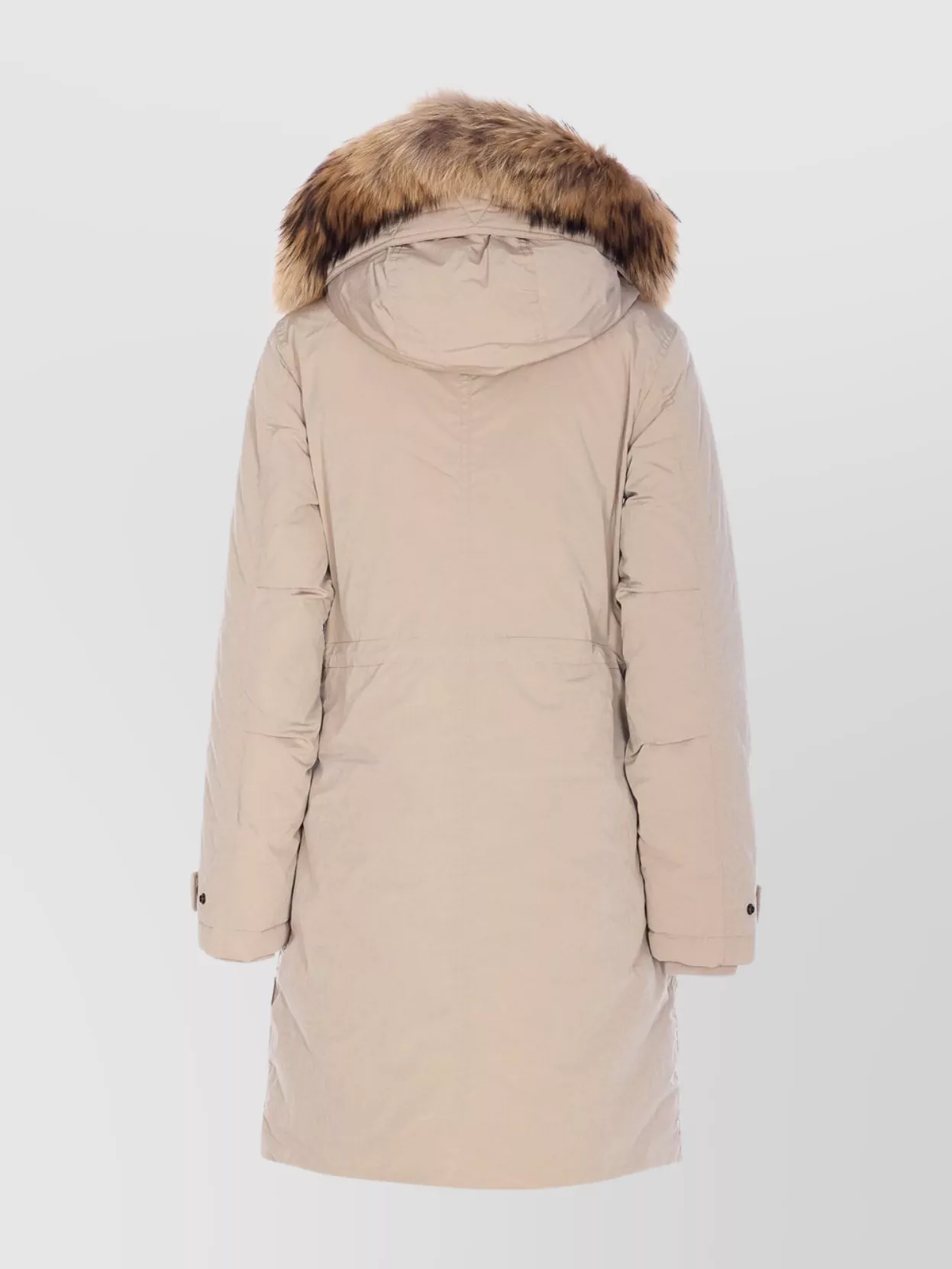Woolrich hooded coat with adjustable cuffs and drawstring waist
