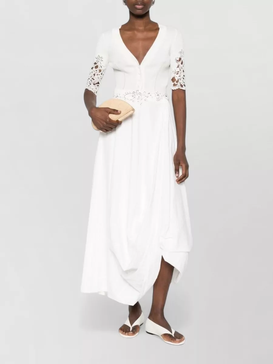 Ermanno Scervino viscose lace-trimmed pleated panelled a-line midi skirt