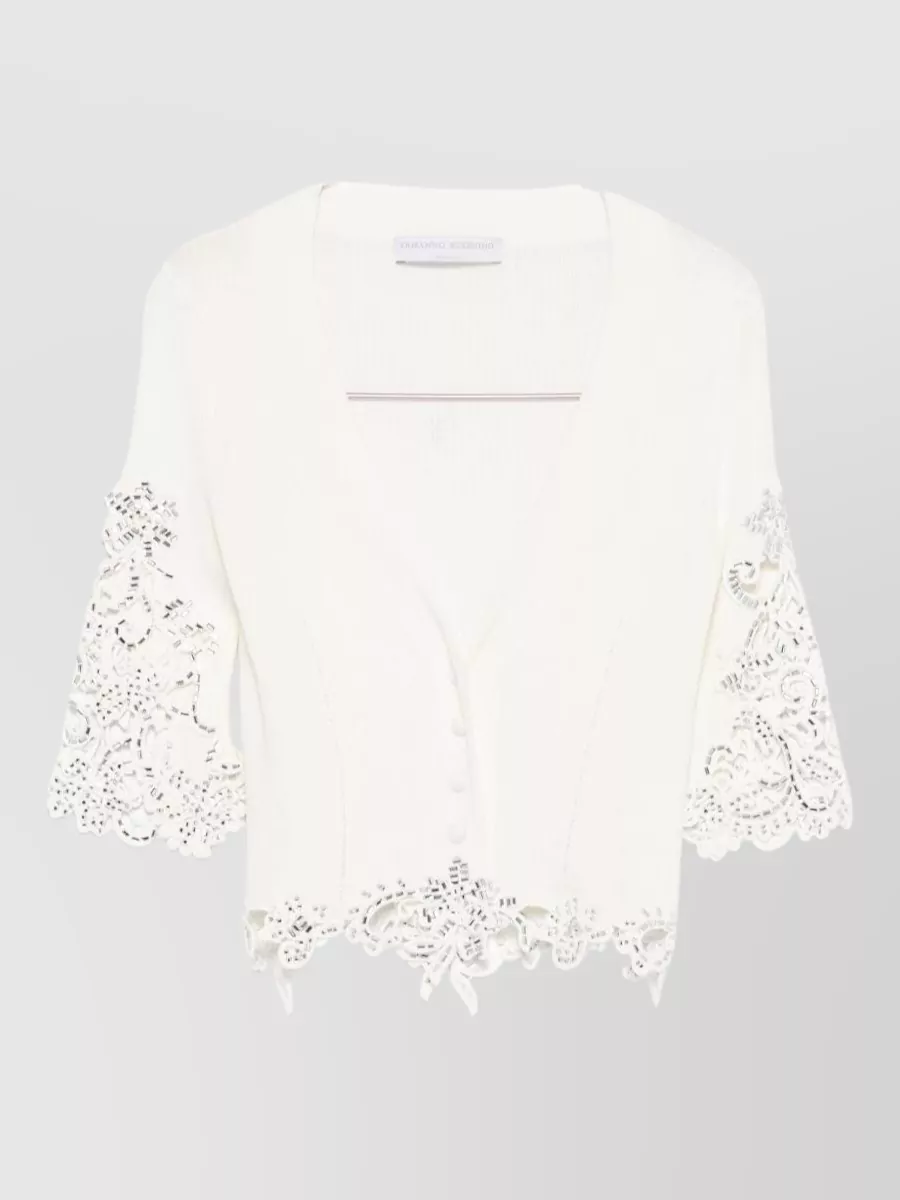 Ermanno Scervino short sleeves lace sheer top scalloped hem