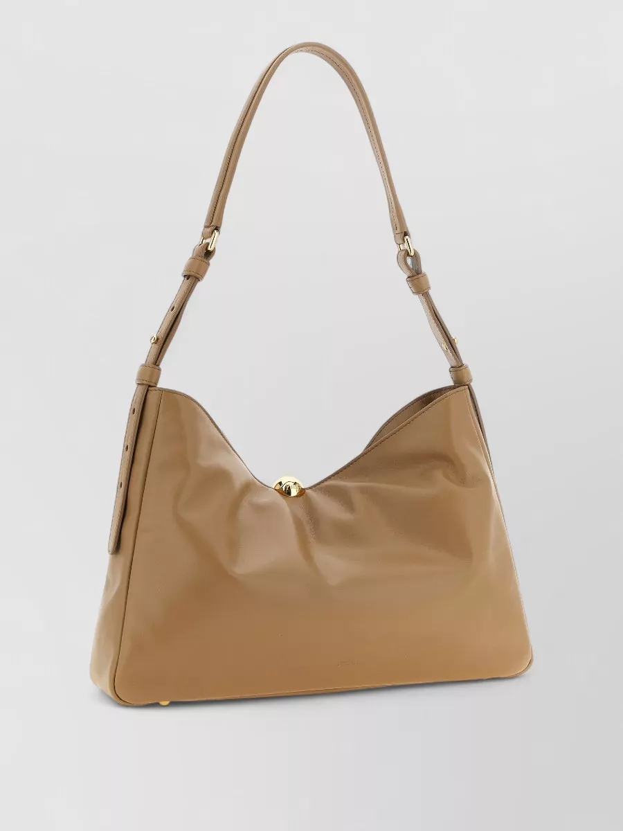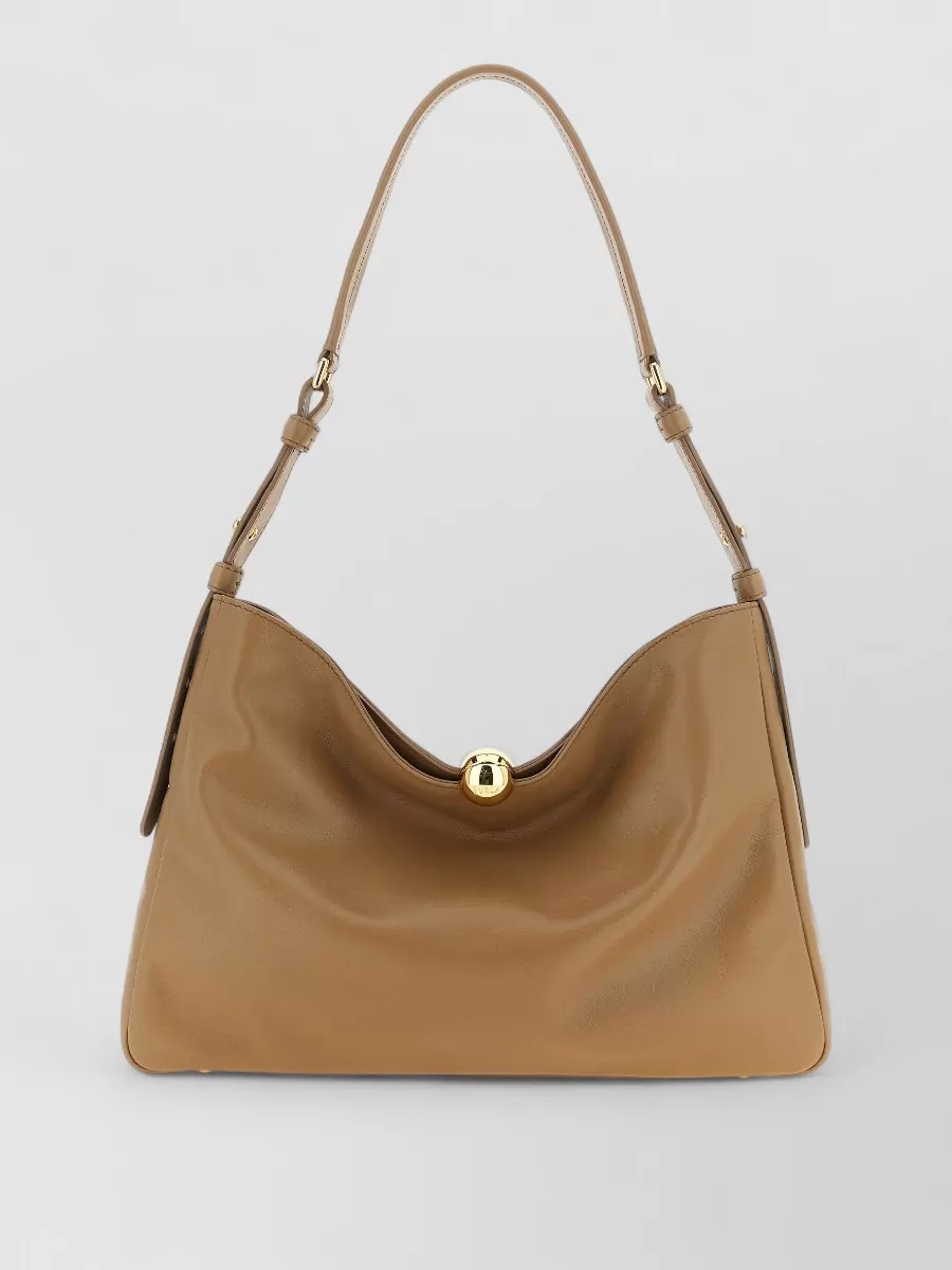 adjustable leather shoulder bag with gold hardware