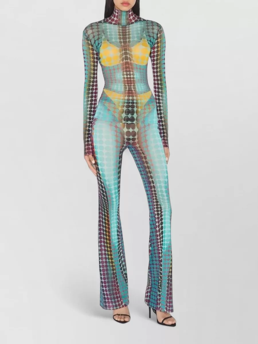 Jean Paul Gaultier flame print sheer mohair bodysuit