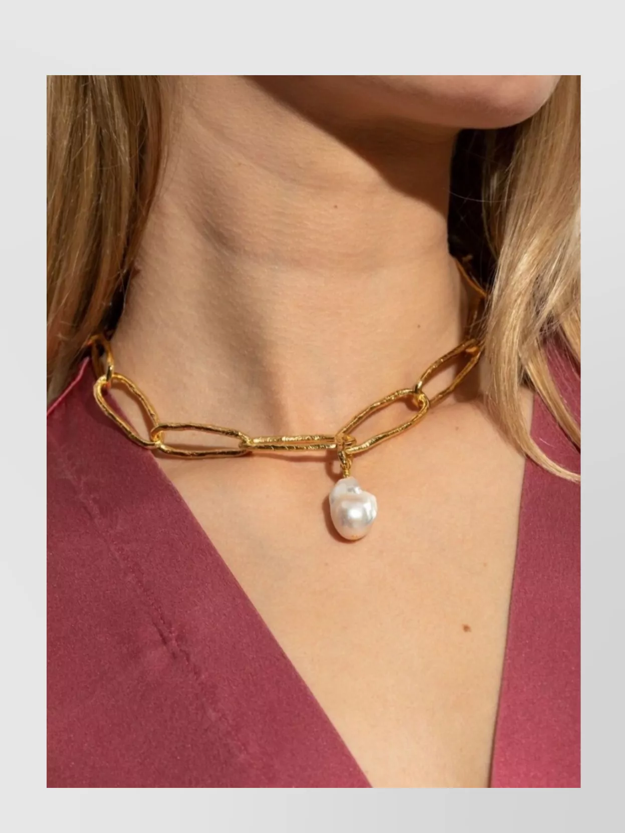 baroque pearl pendant chain link necklace