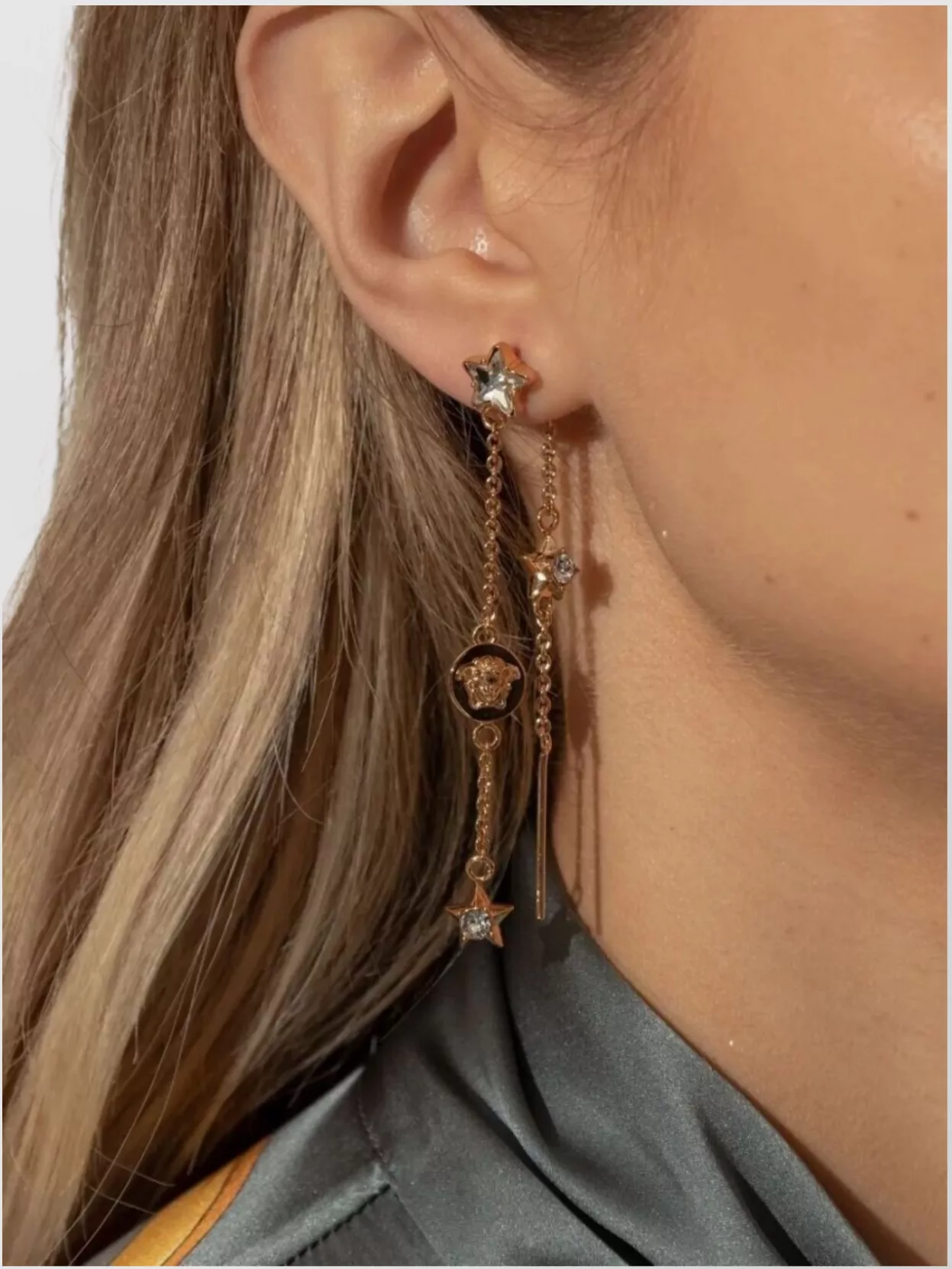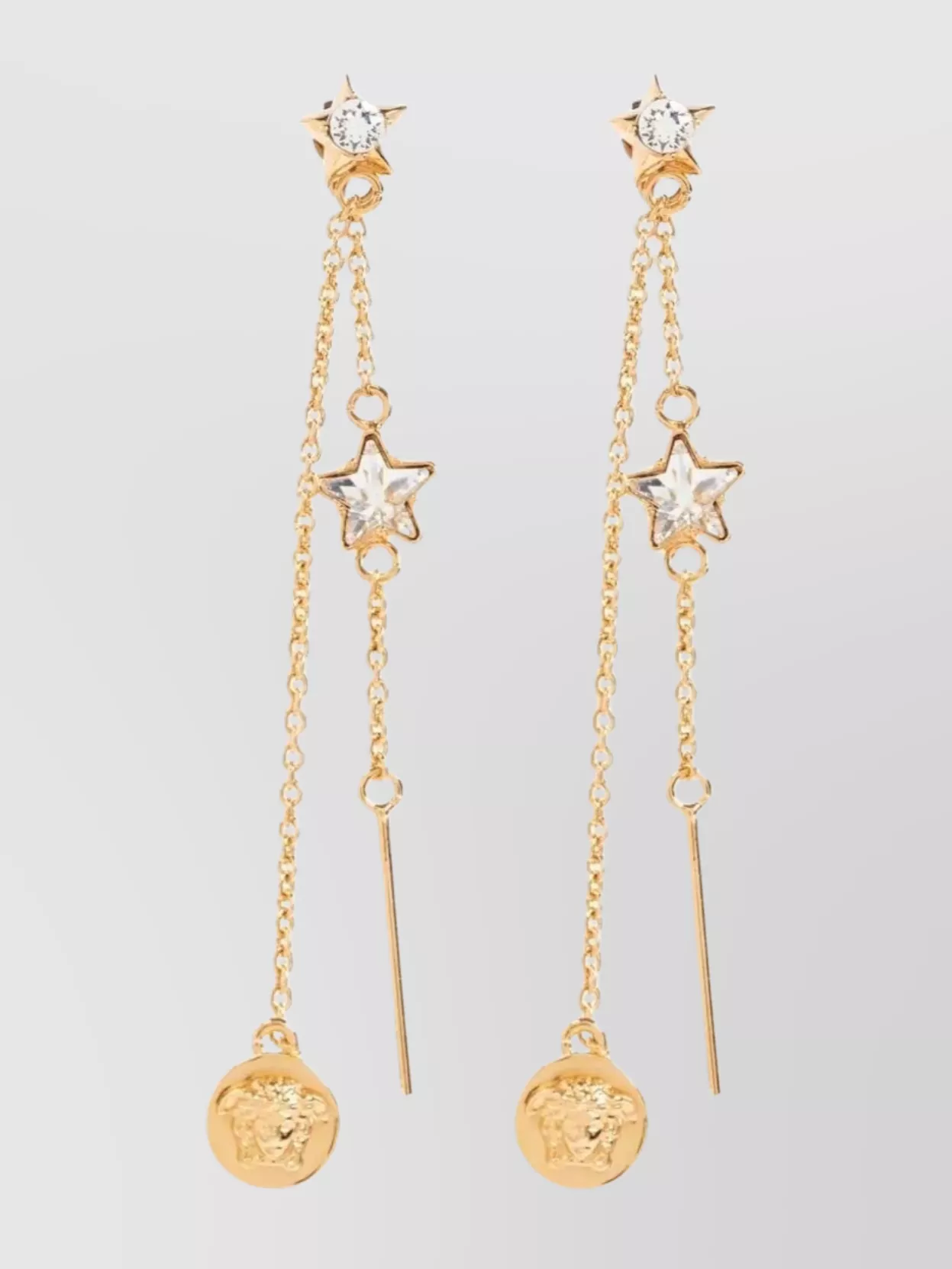 Versace star design drop earrings with chain detail