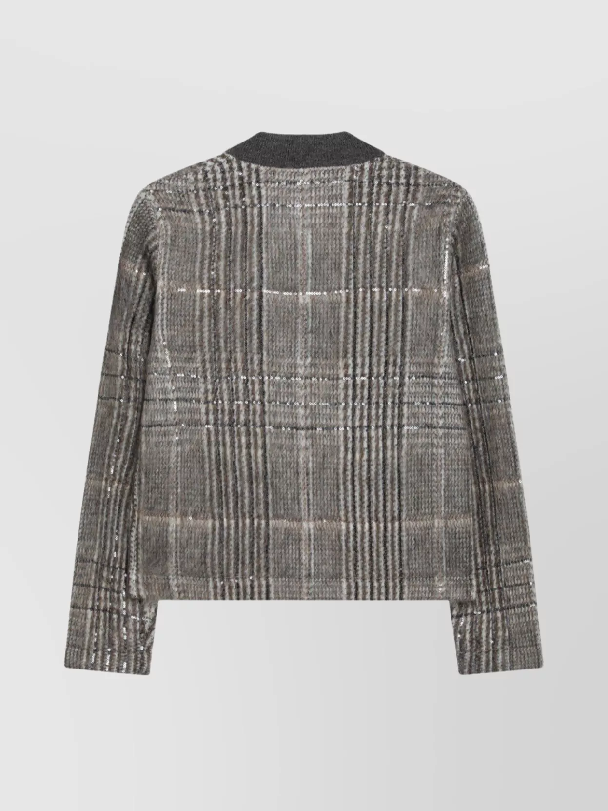 Brunello Cucinelli check embroidered jacquard long sleeve cardigan