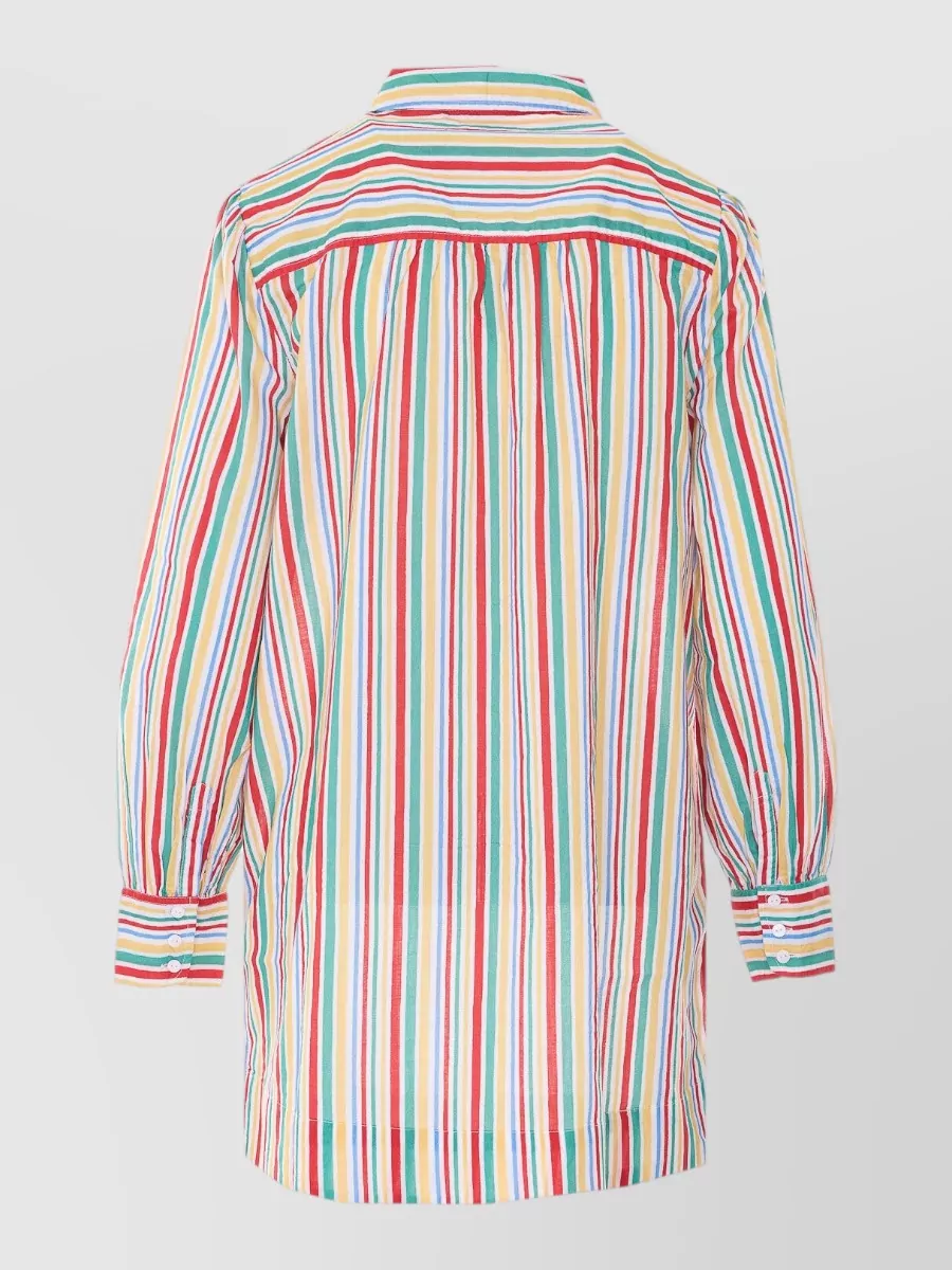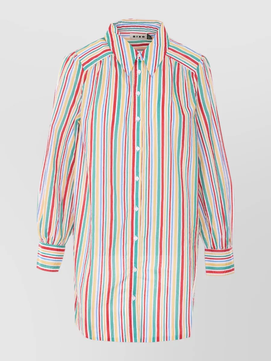 Rixo collared striped top long cuffed sleeves