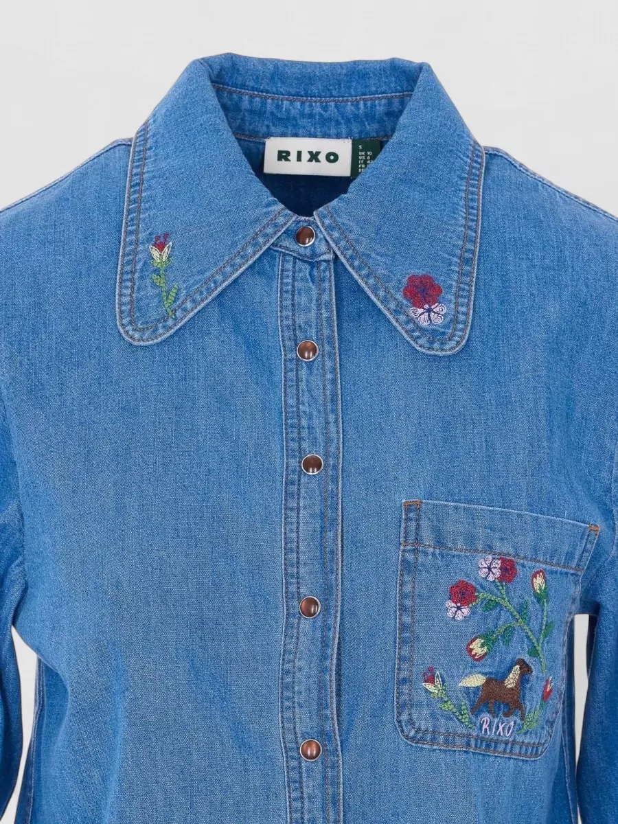 Rixo shirt long sleeves embroidered collar front pocket