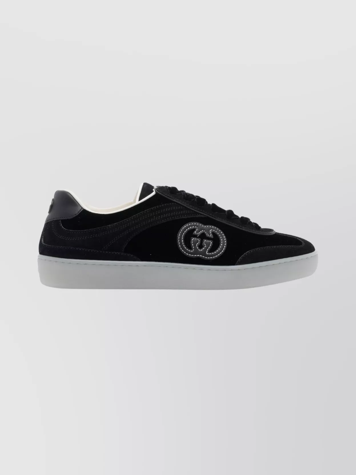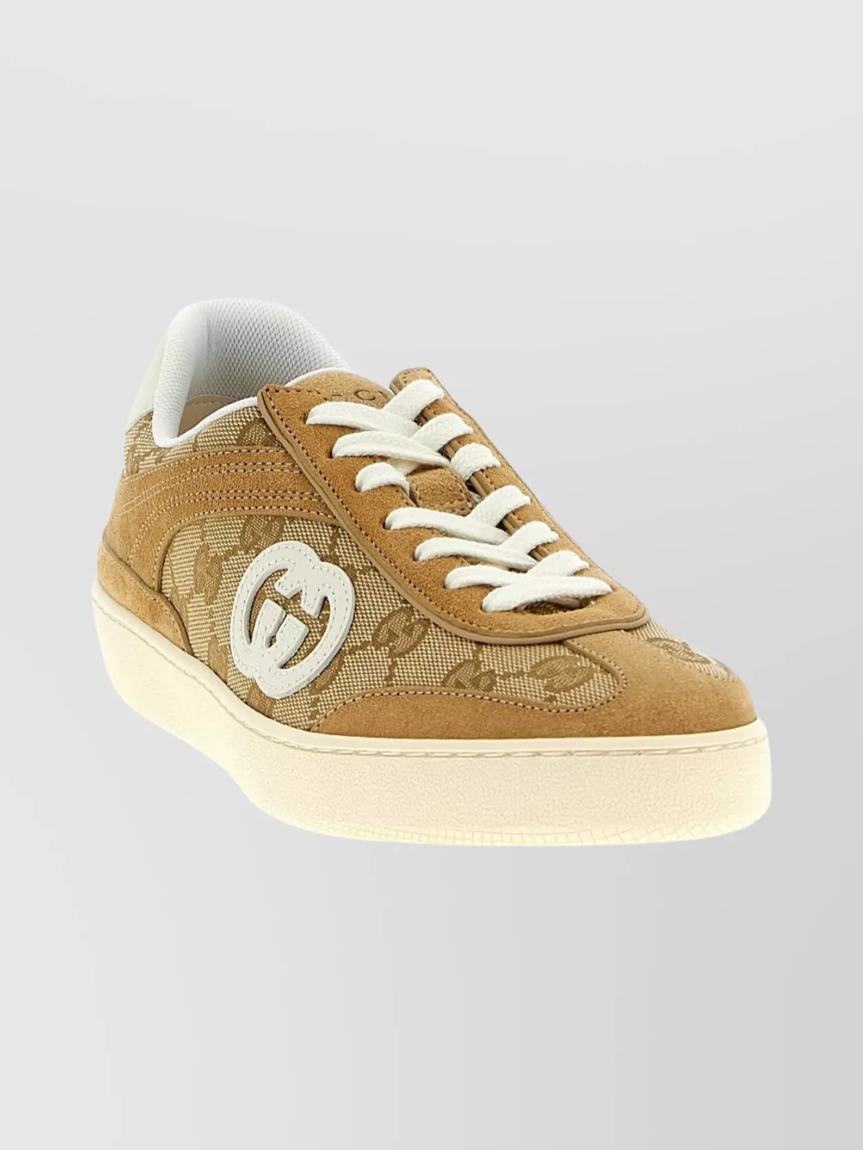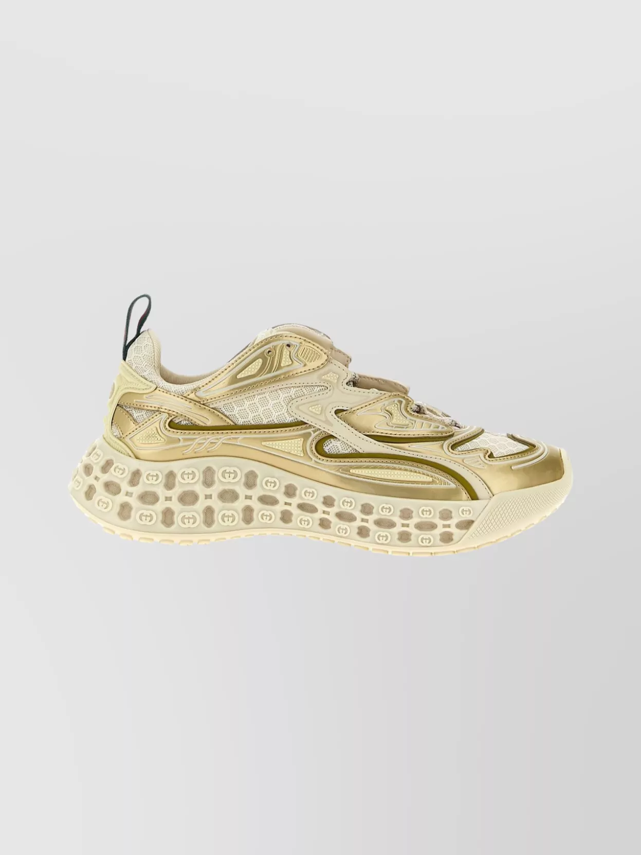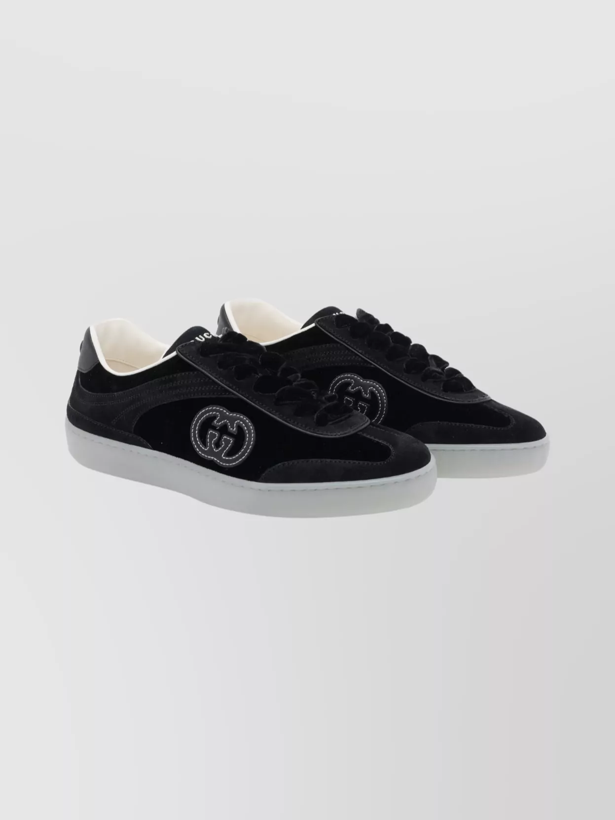 Gucci leather sneakers contrast panels low-top silhouette rubber sole