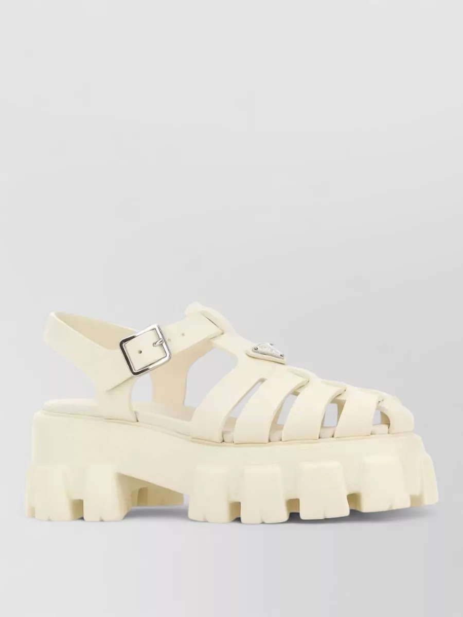 Open-toe sandal with a chunky platform sole and adjustable ankle strap that secures the foot within a roomy round-toe cage
