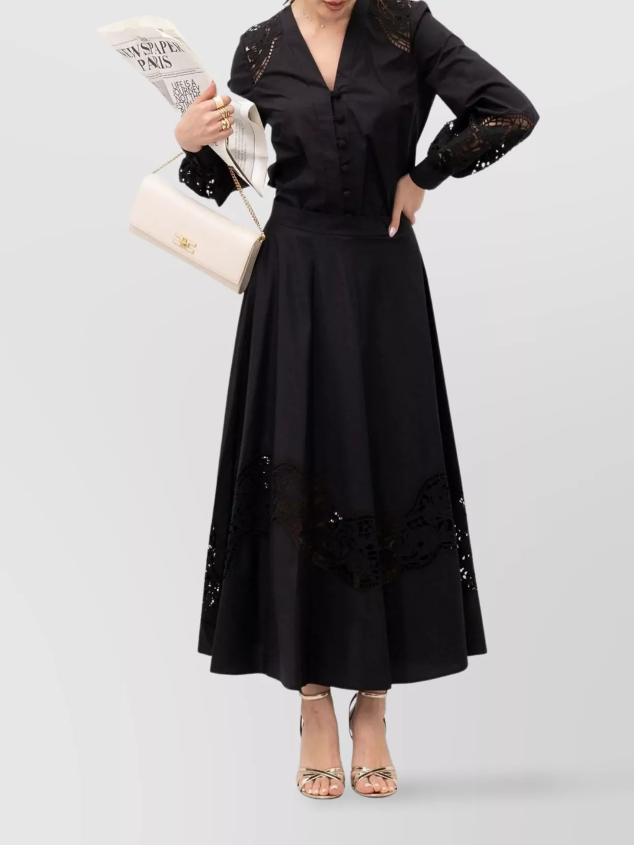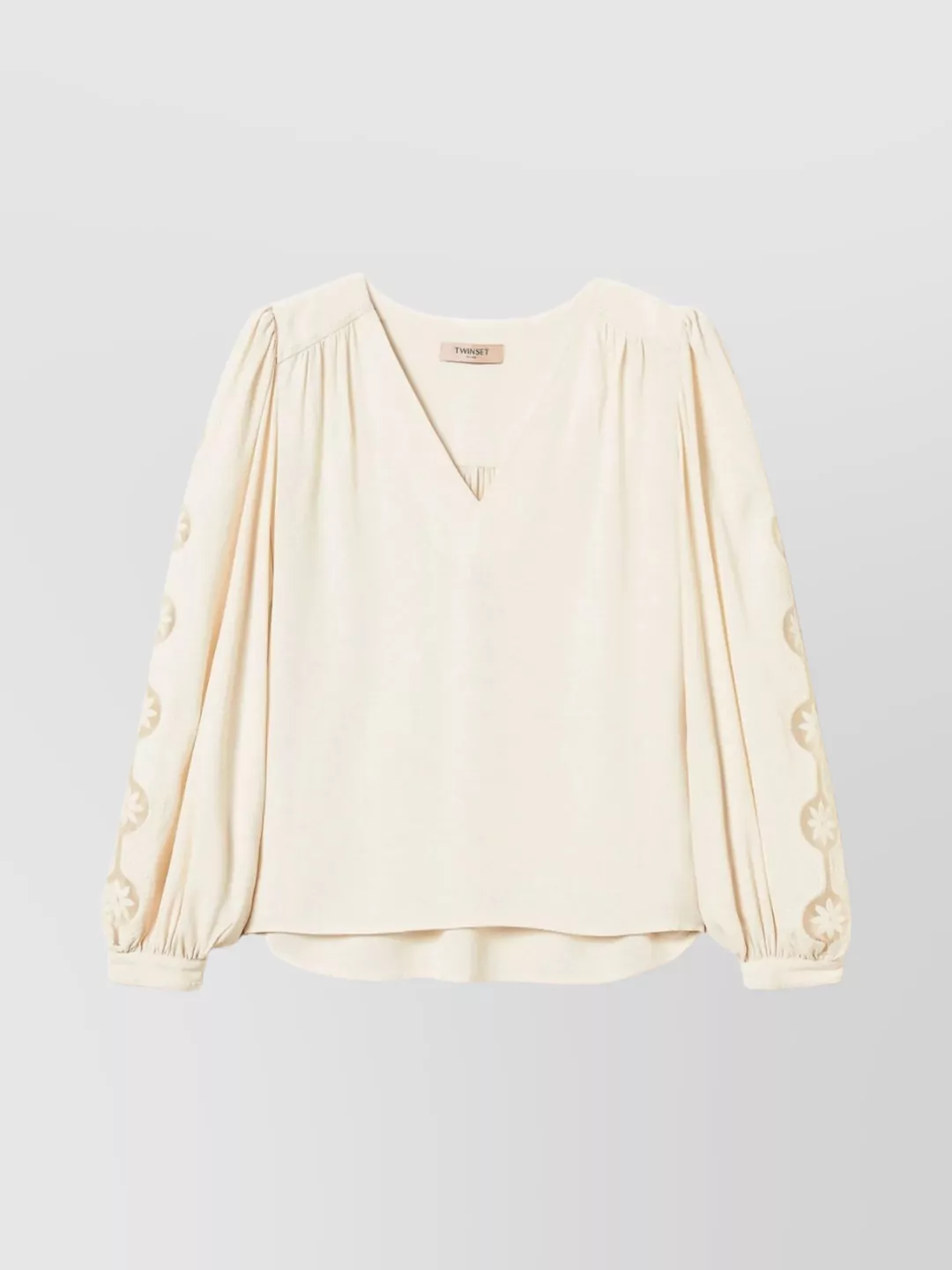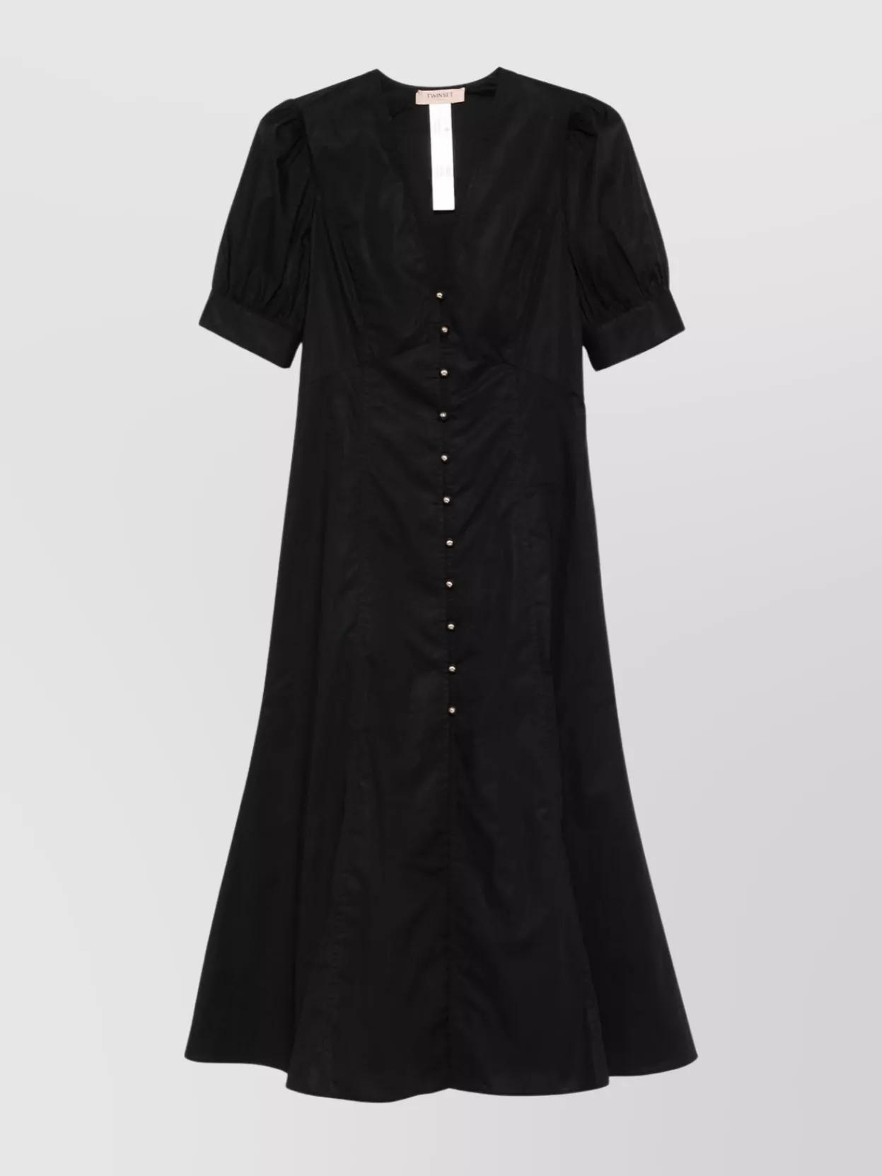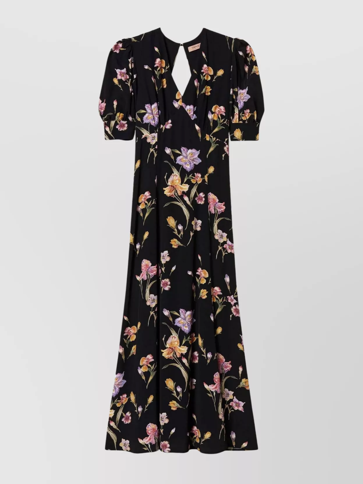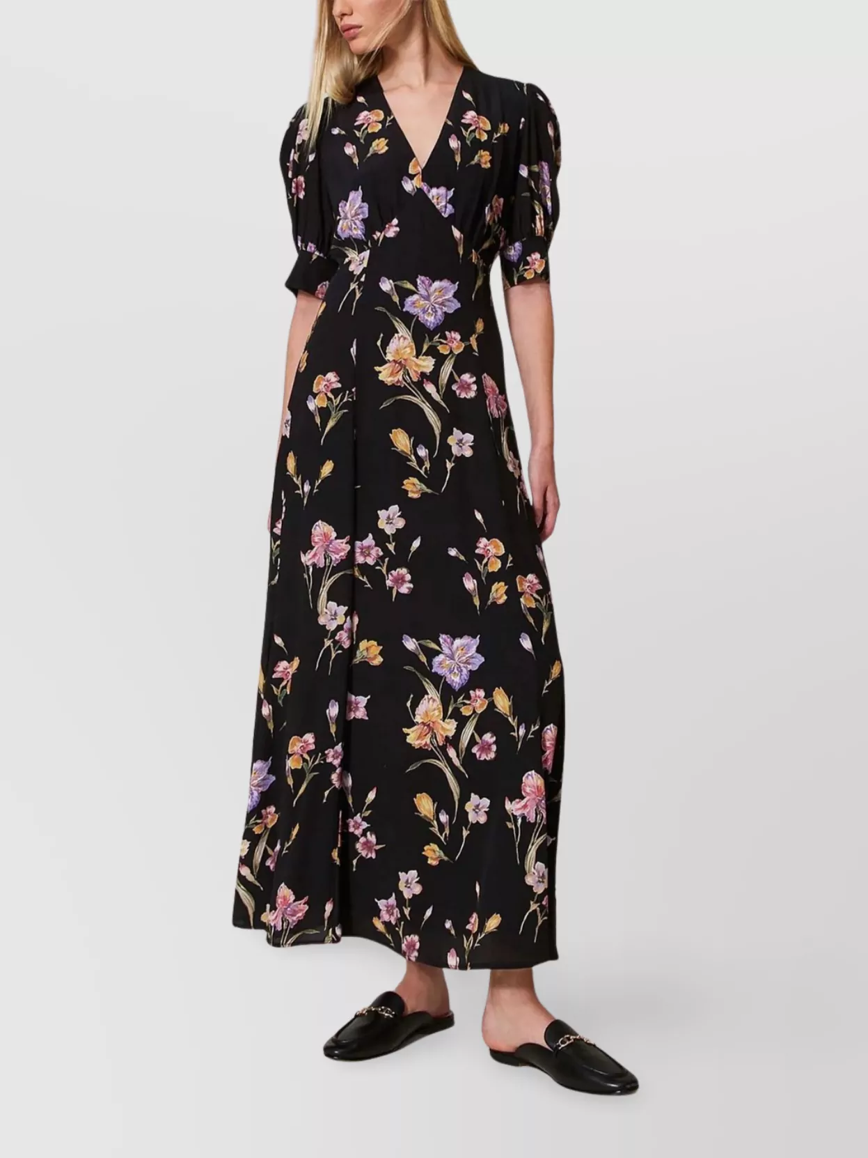 Twin-Set floral maxi dress with v-neckline and puff sleeves
