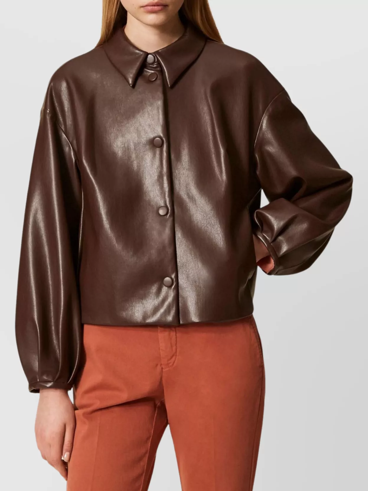 Twin-Set oversized shiny jacket collared neck long sleeves