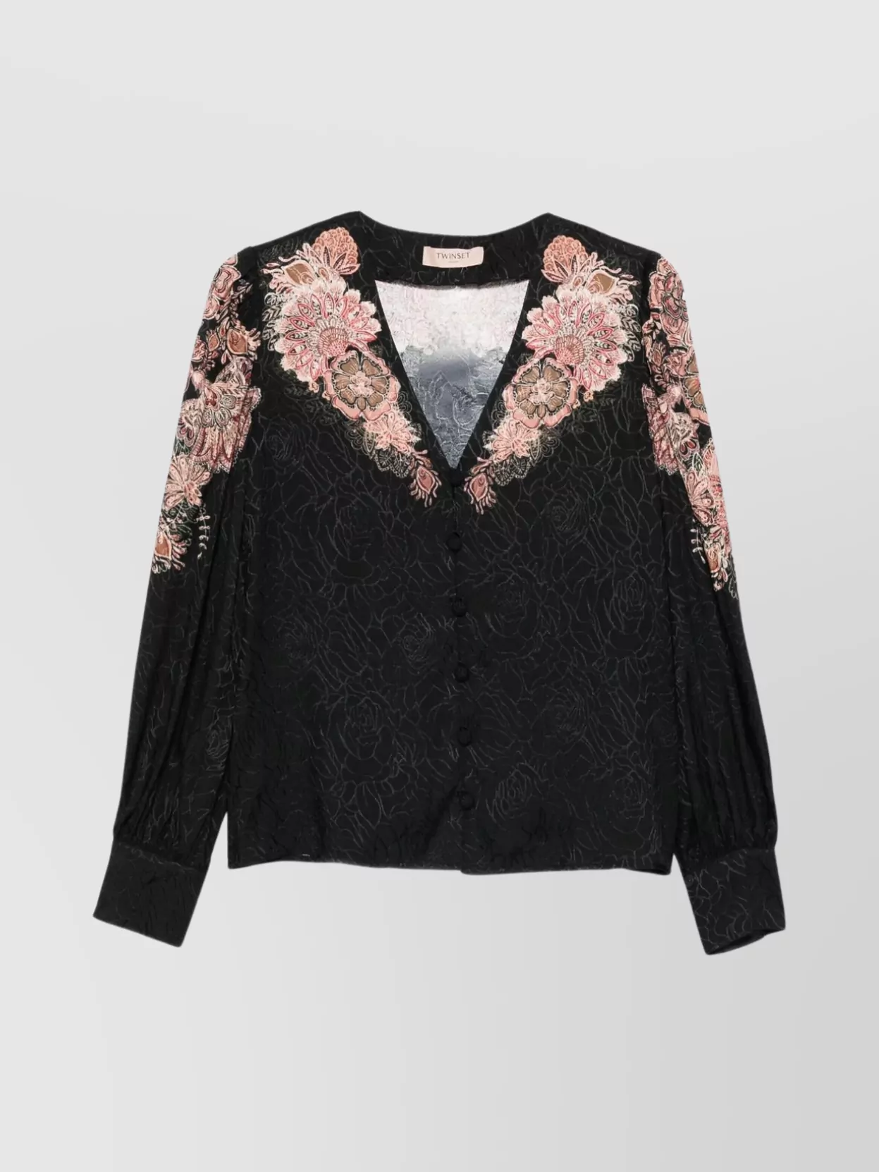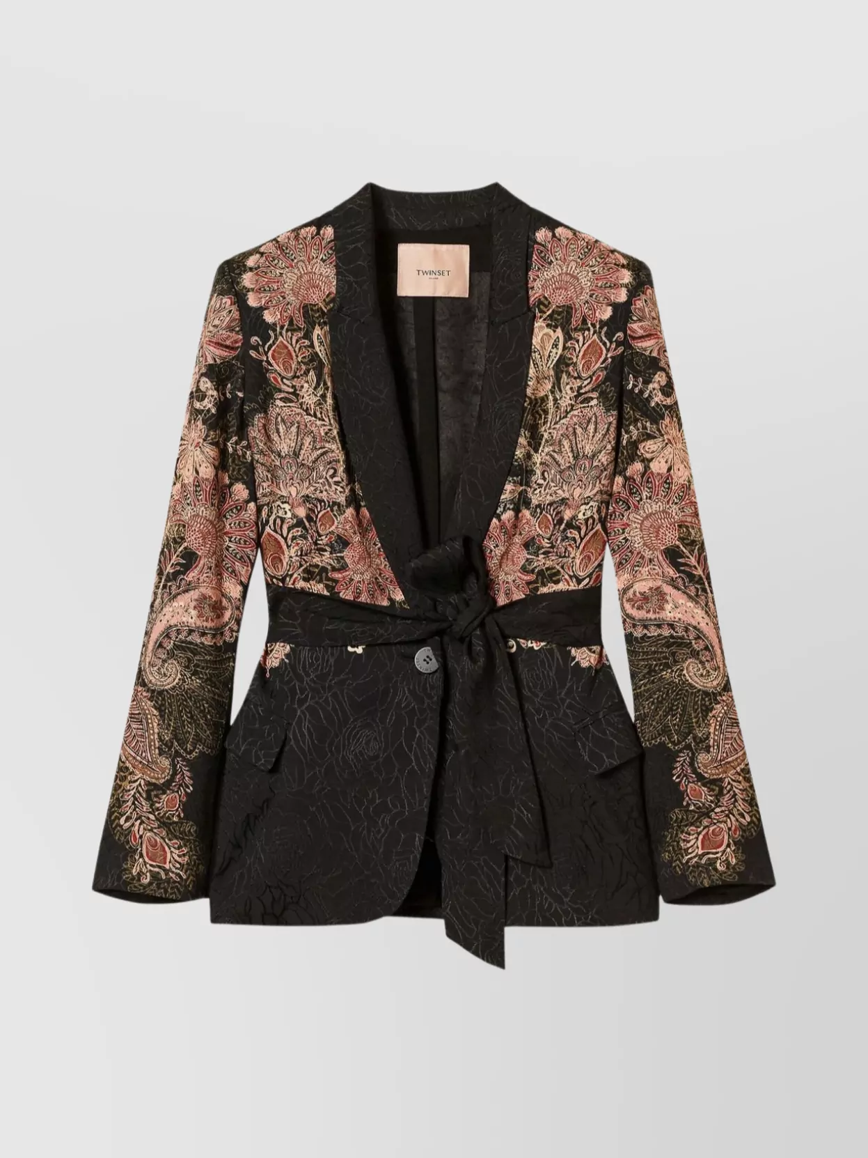 Twin-Set floral lace velvet jacket with sheer sleeves