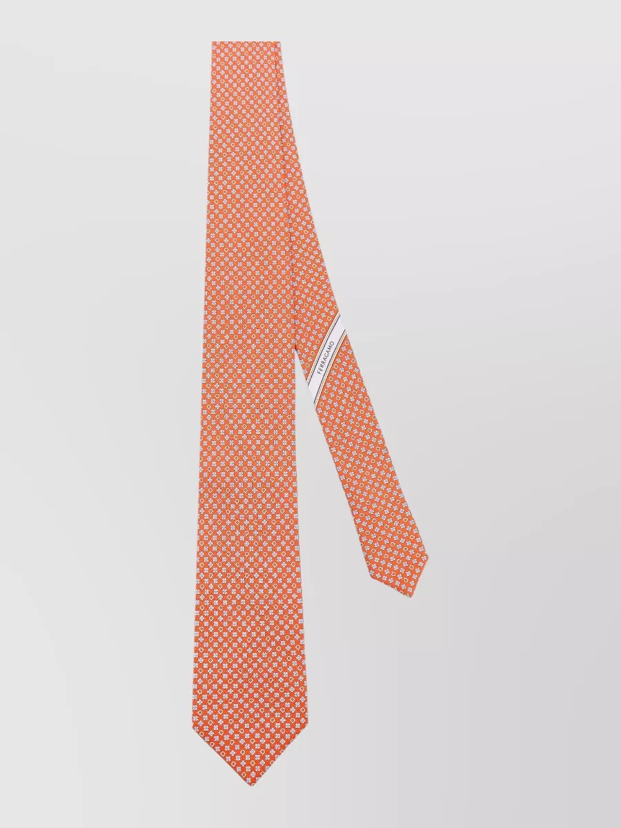 Ferragamo silk tie with patterned design and pointed tip