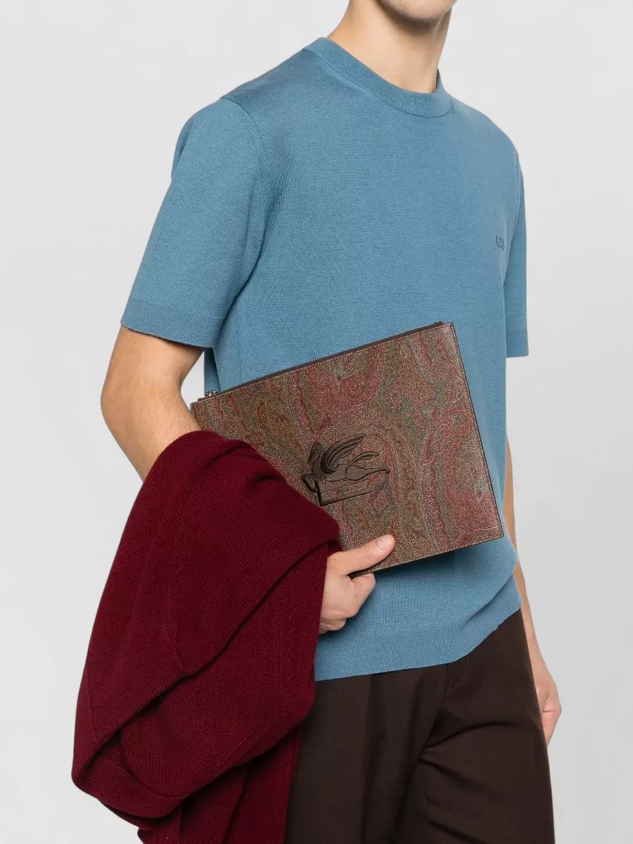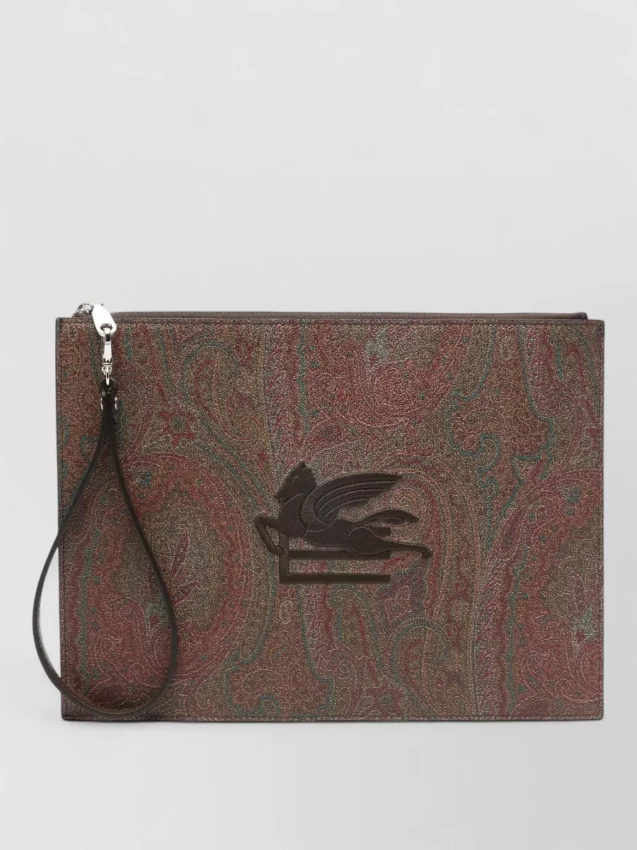 Ferragamo clutch bag metal hardware rectangular shape textured