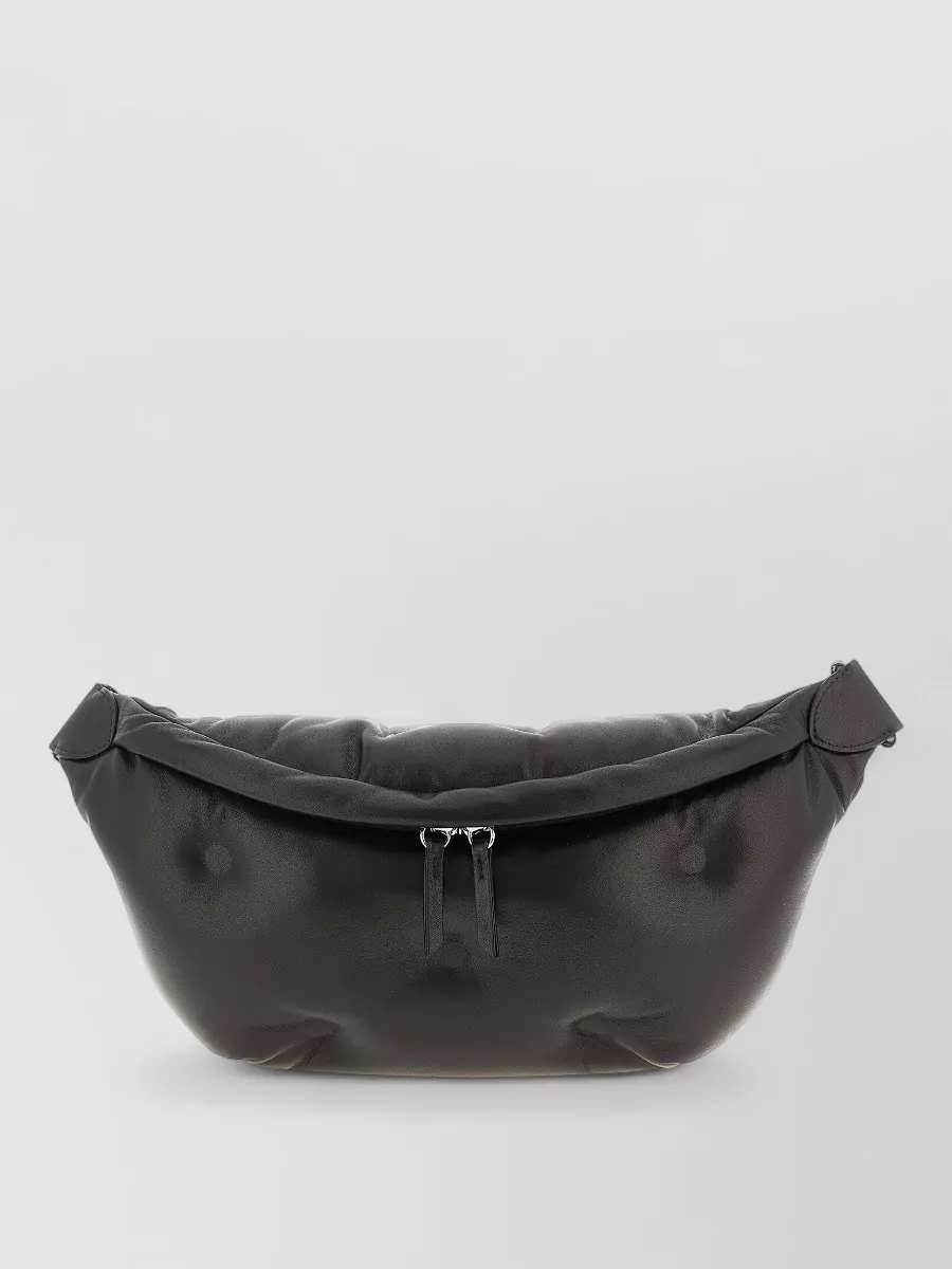 leather shoulder bag with adjustable strap and chain detail