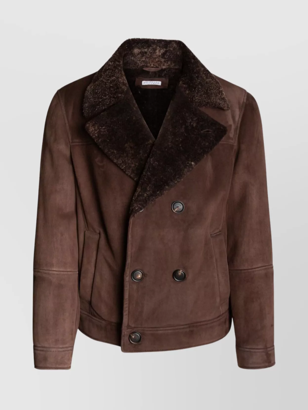 Brunello Cucinelli double breasted coat shearling collar