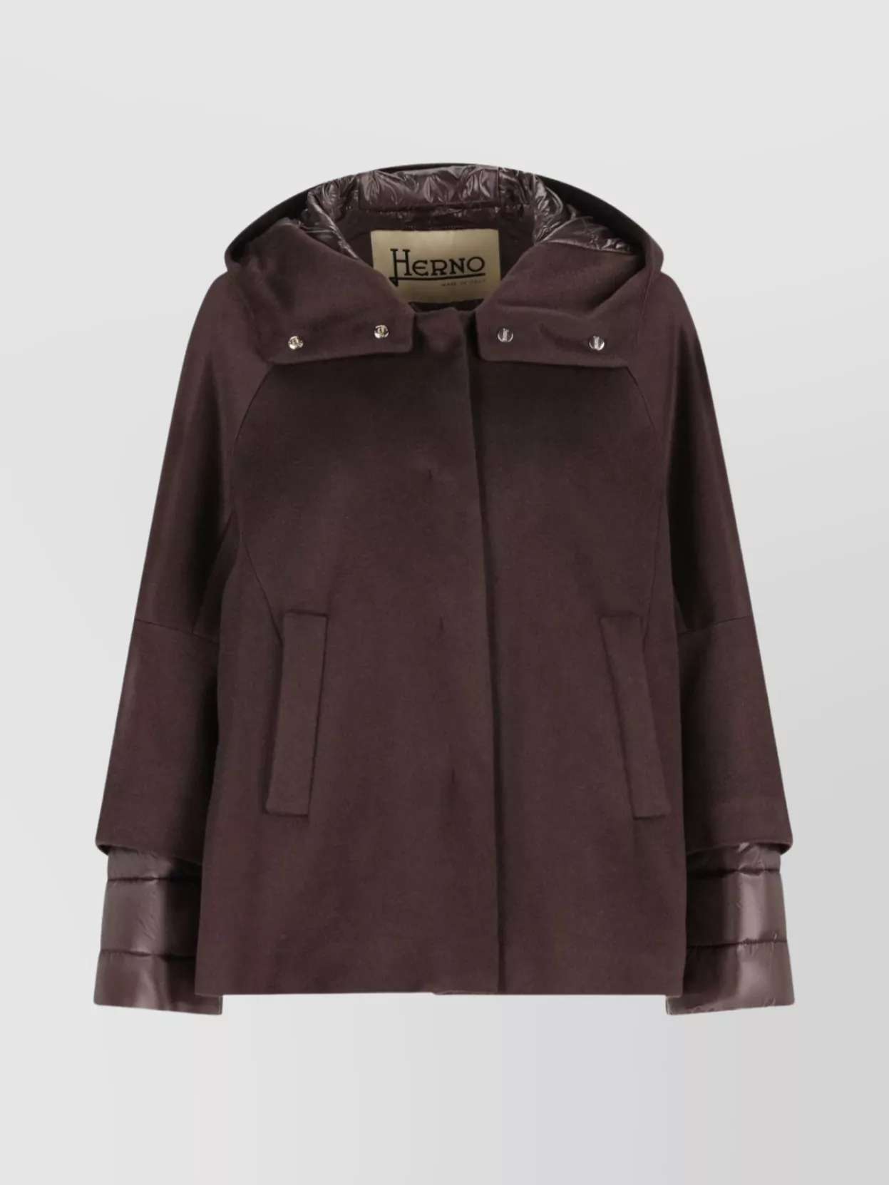 Herno hooded cape with front pockets and padded cuffs