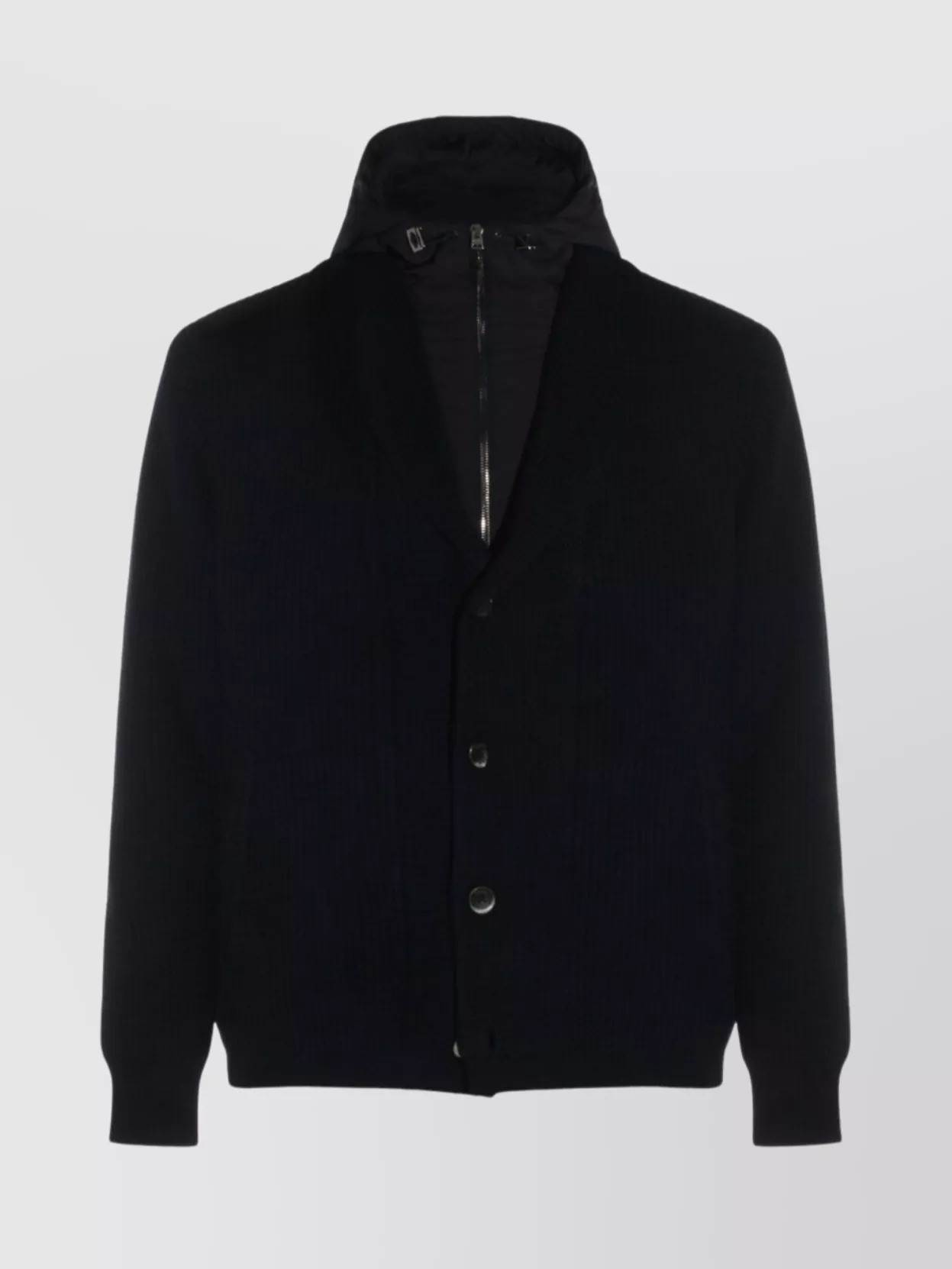 Herno knit bomber with ribbed texture and hooded design