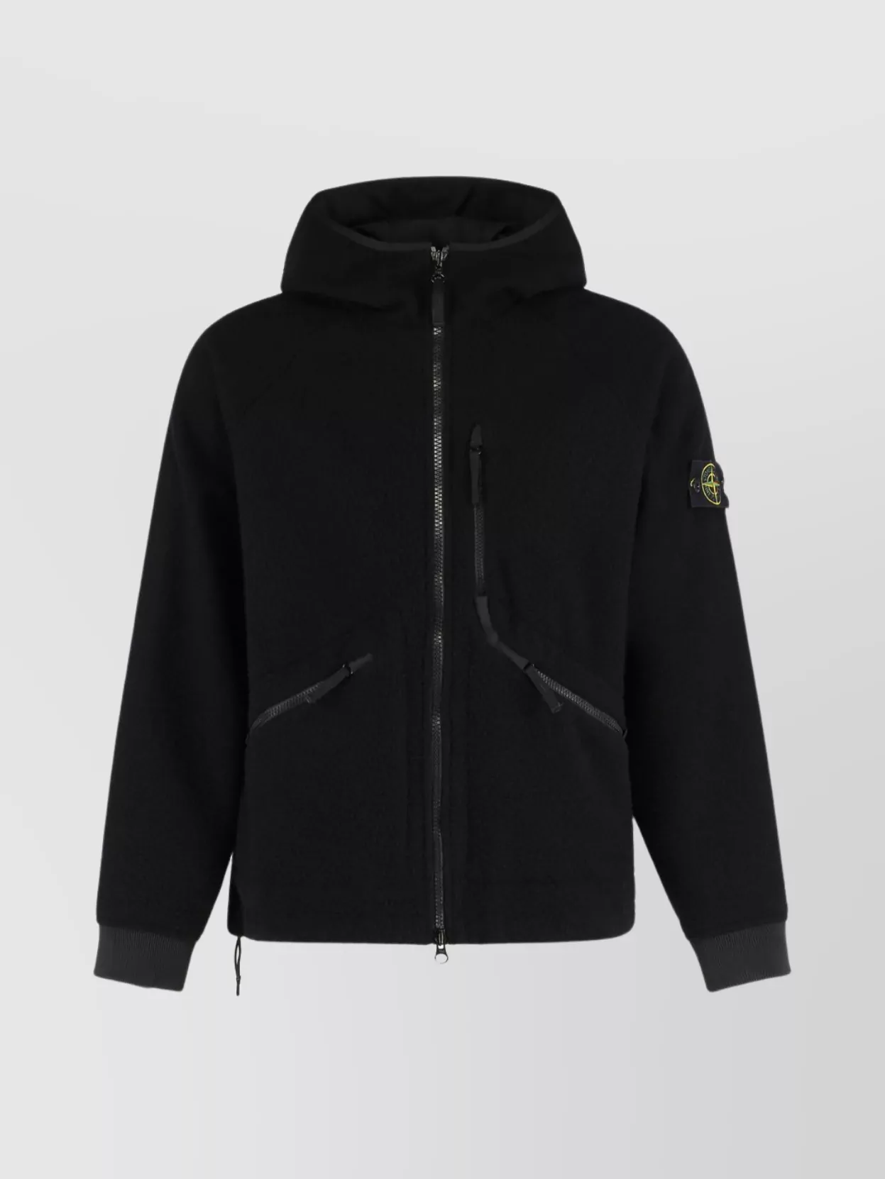 Stone Island hooded long sleeve jacket with ribbed cuffs