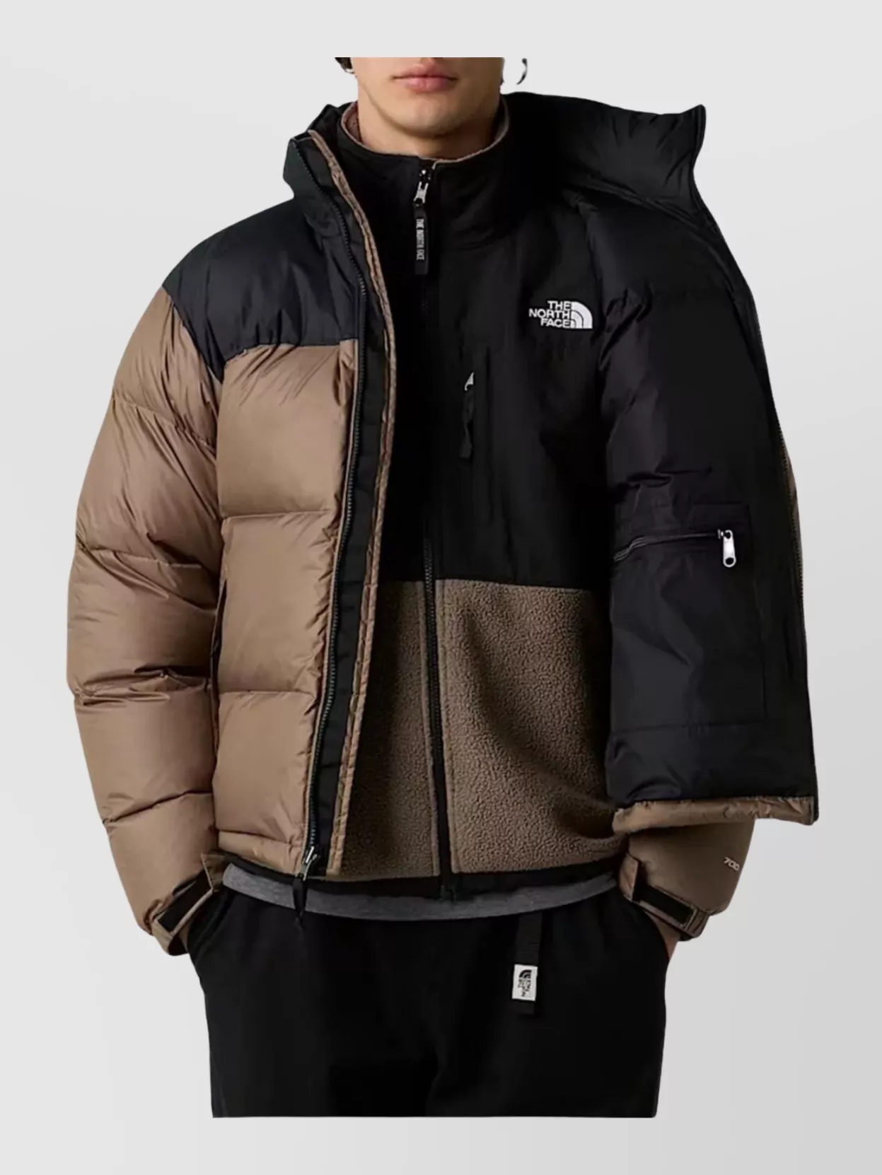 The North Face bicolor down jacket adjustable drawstring