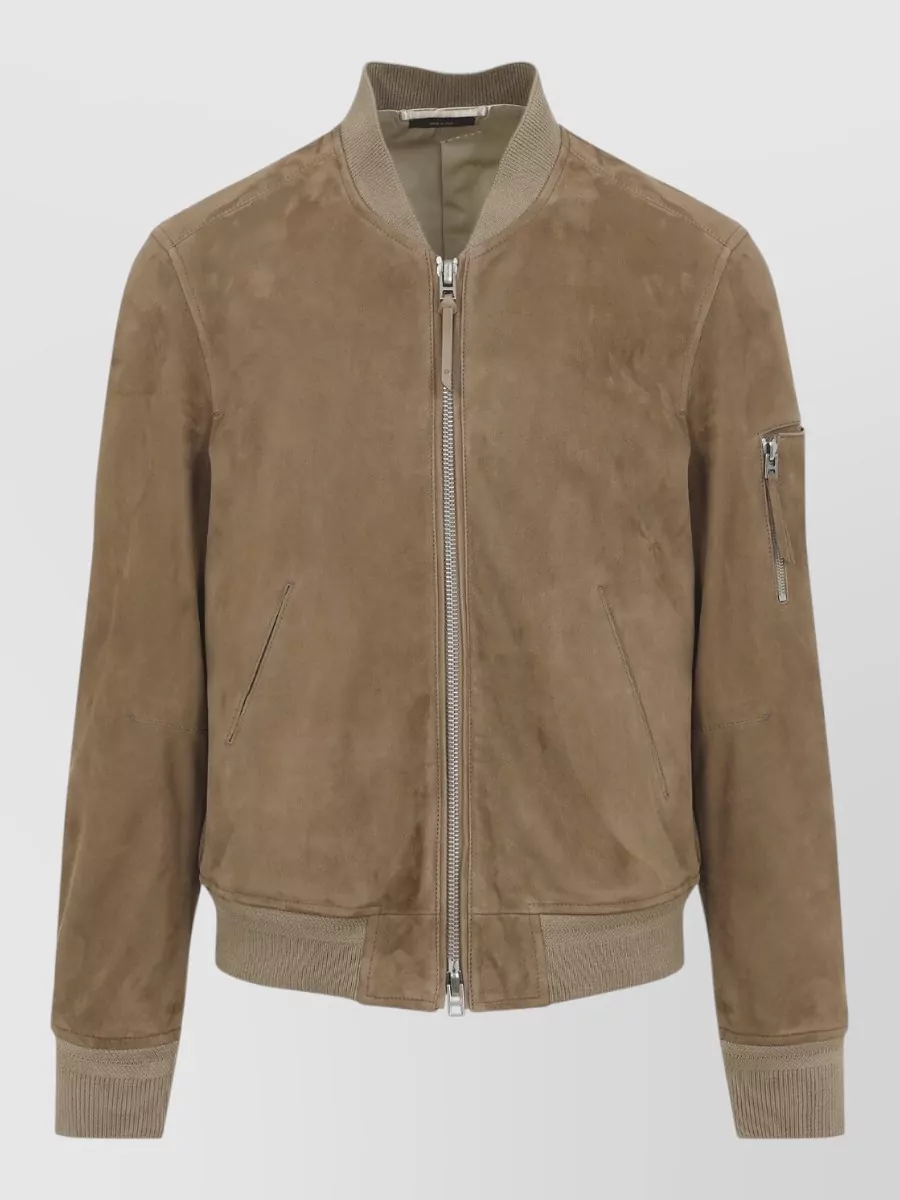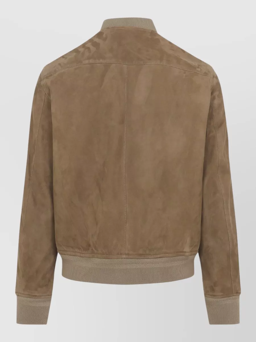 Tom Ford suede bomber jacket ribbed cuffs hem pockets