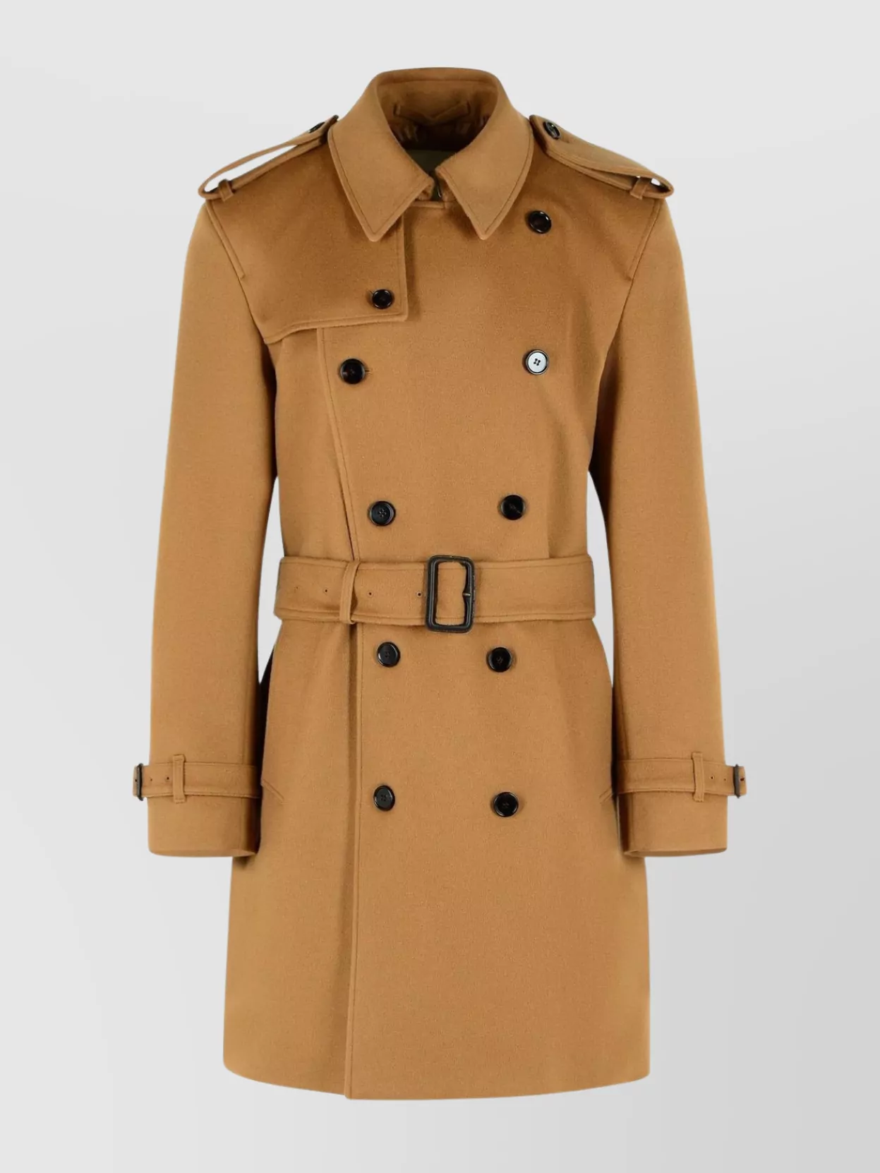double-breasted jacket belted at the waist
