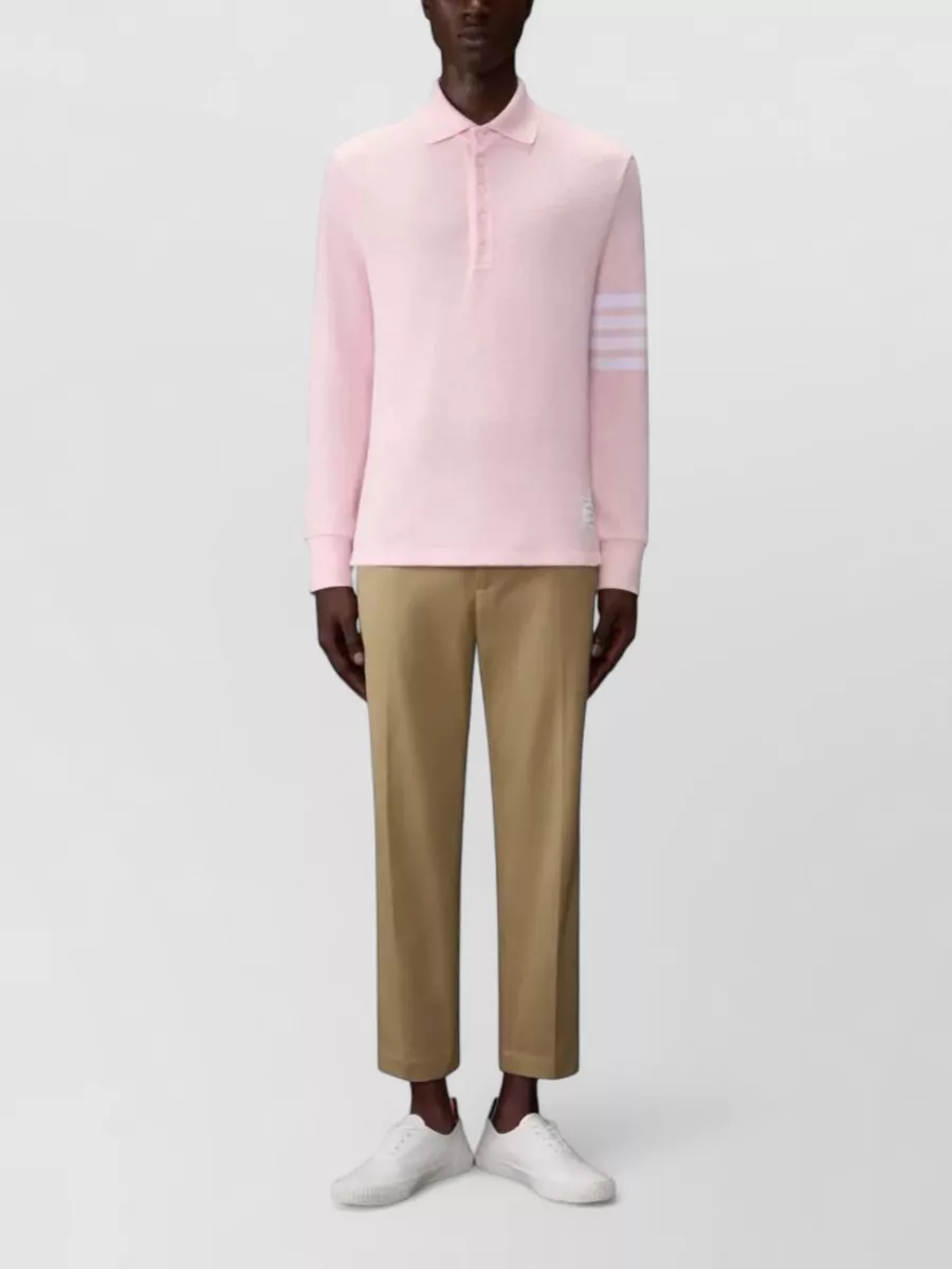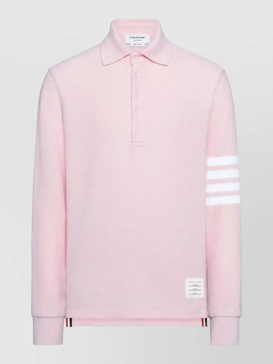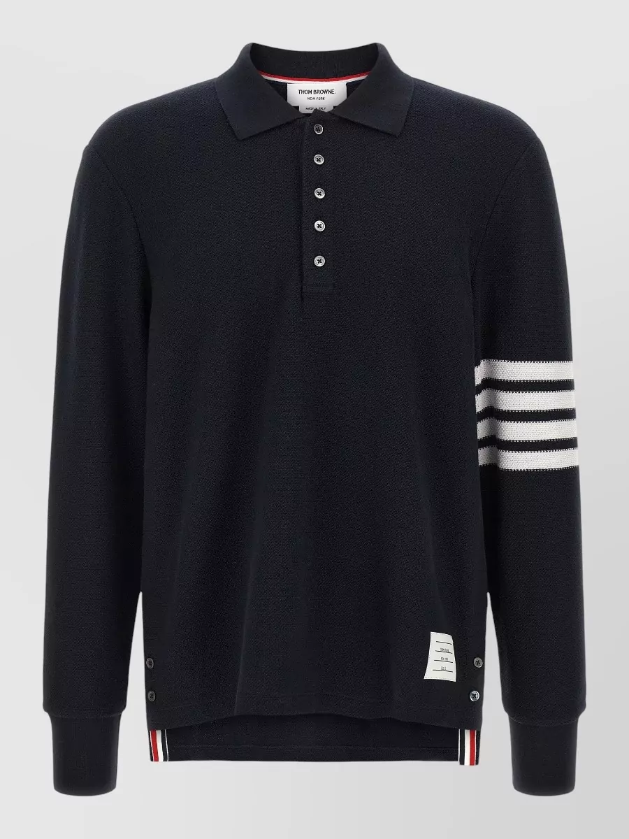 Thom Browne cotton polo shirt with ribbed collar and side slits