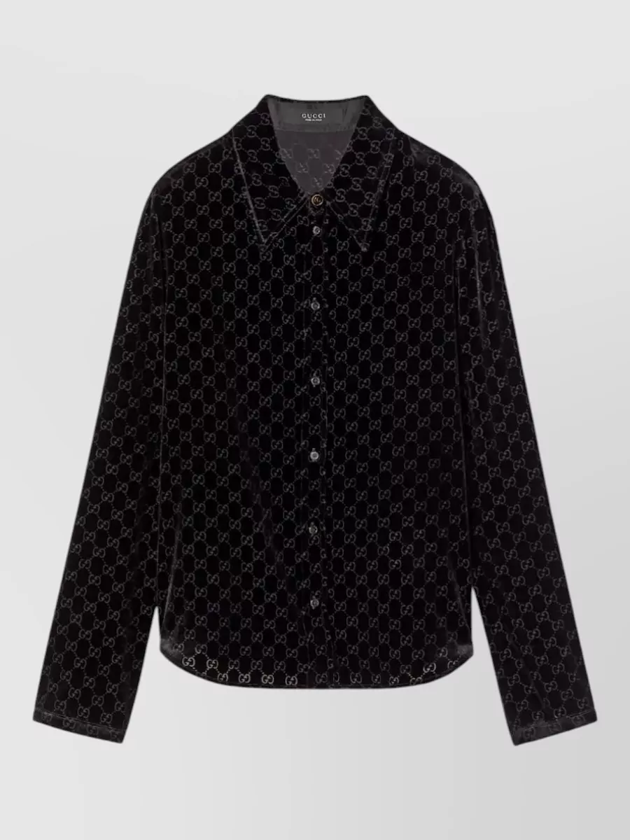 Gucci velvet logo-print shirt
