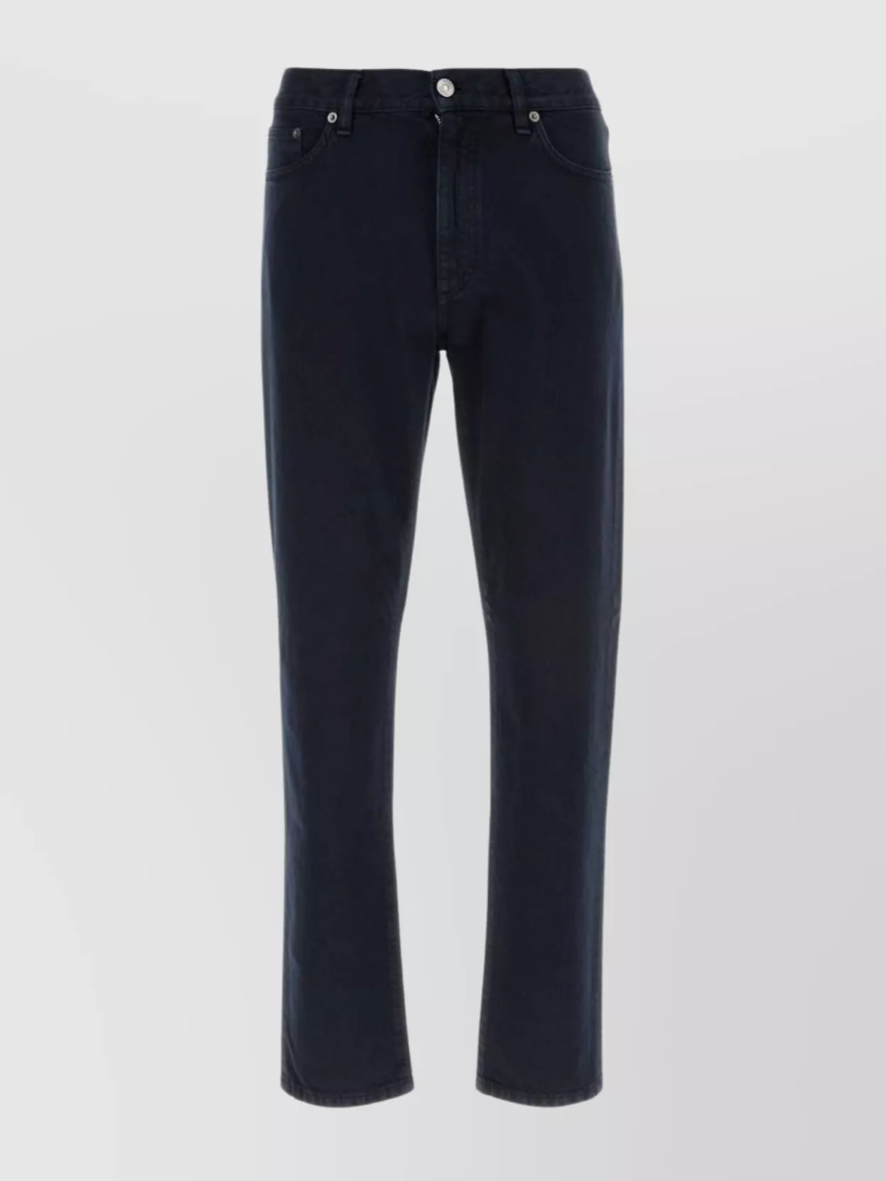 denim trousers with belt loops and five pockets