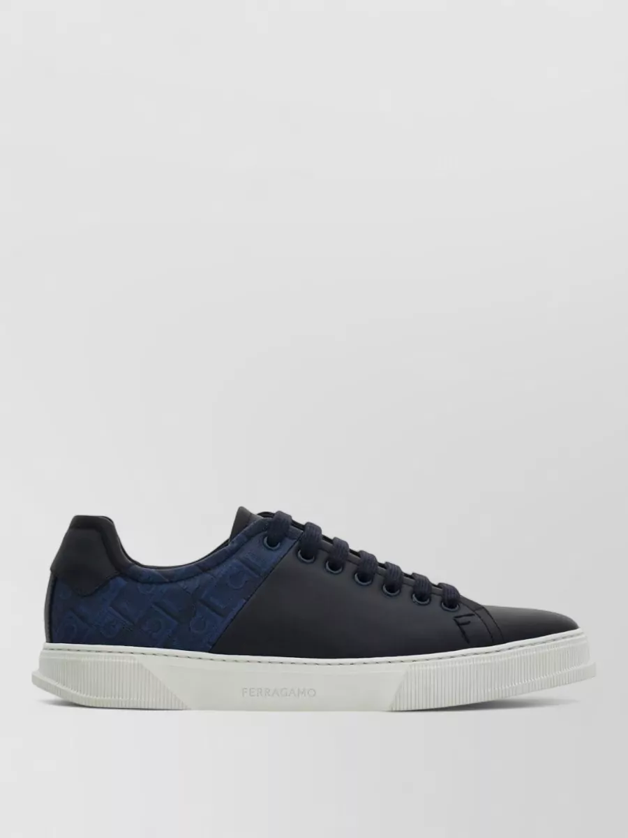 Ferragamo clayton monogram jacquard leather lace up sneakers