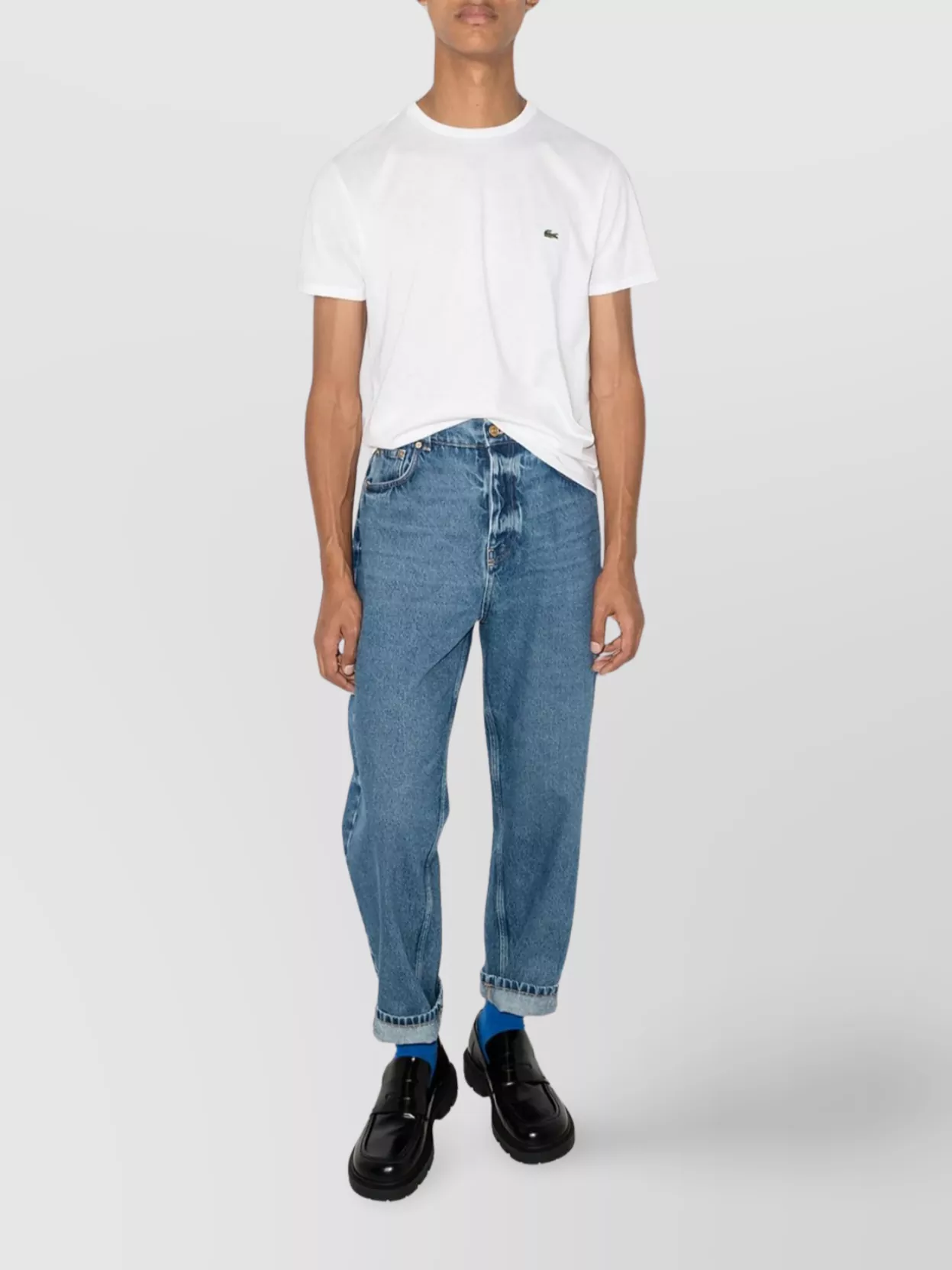 Lacoste cotton shirt with button-down collar and curved hem