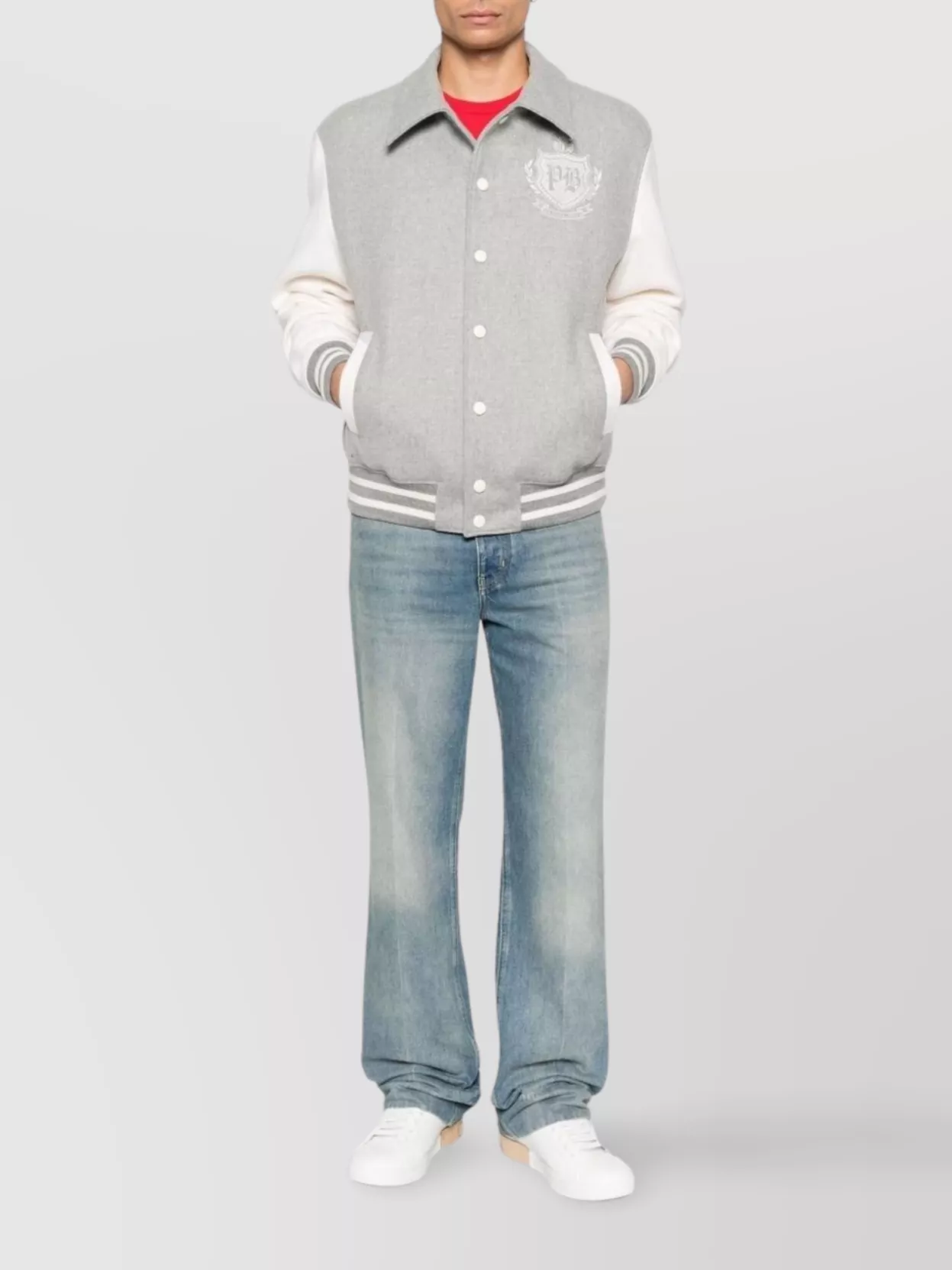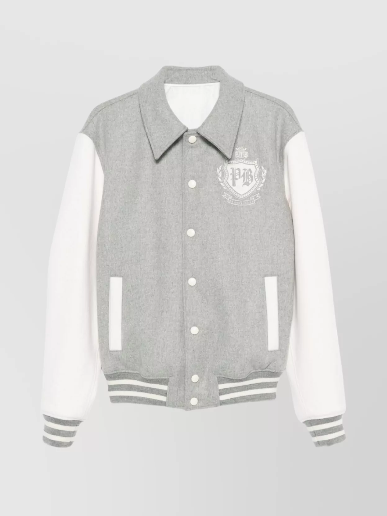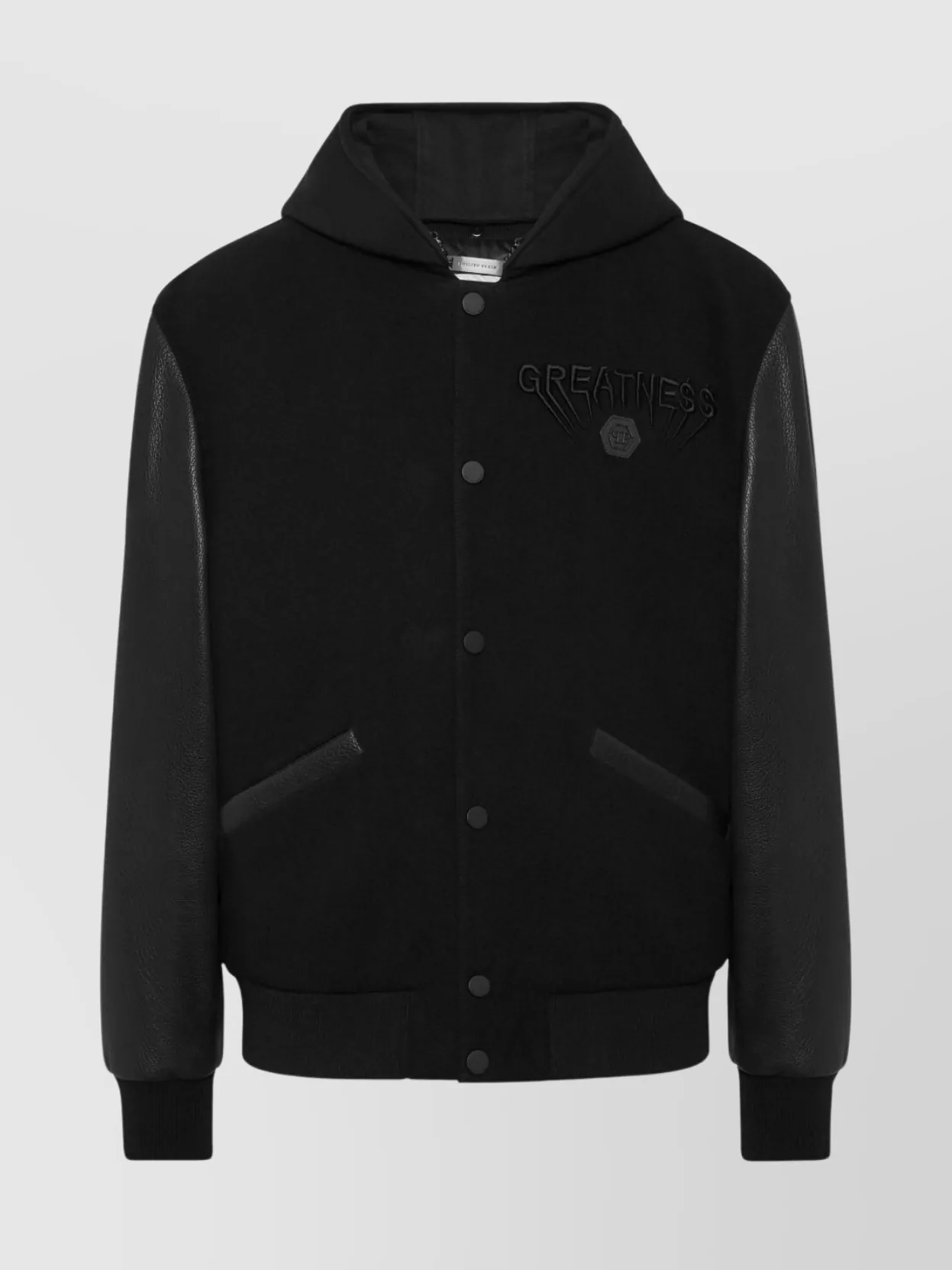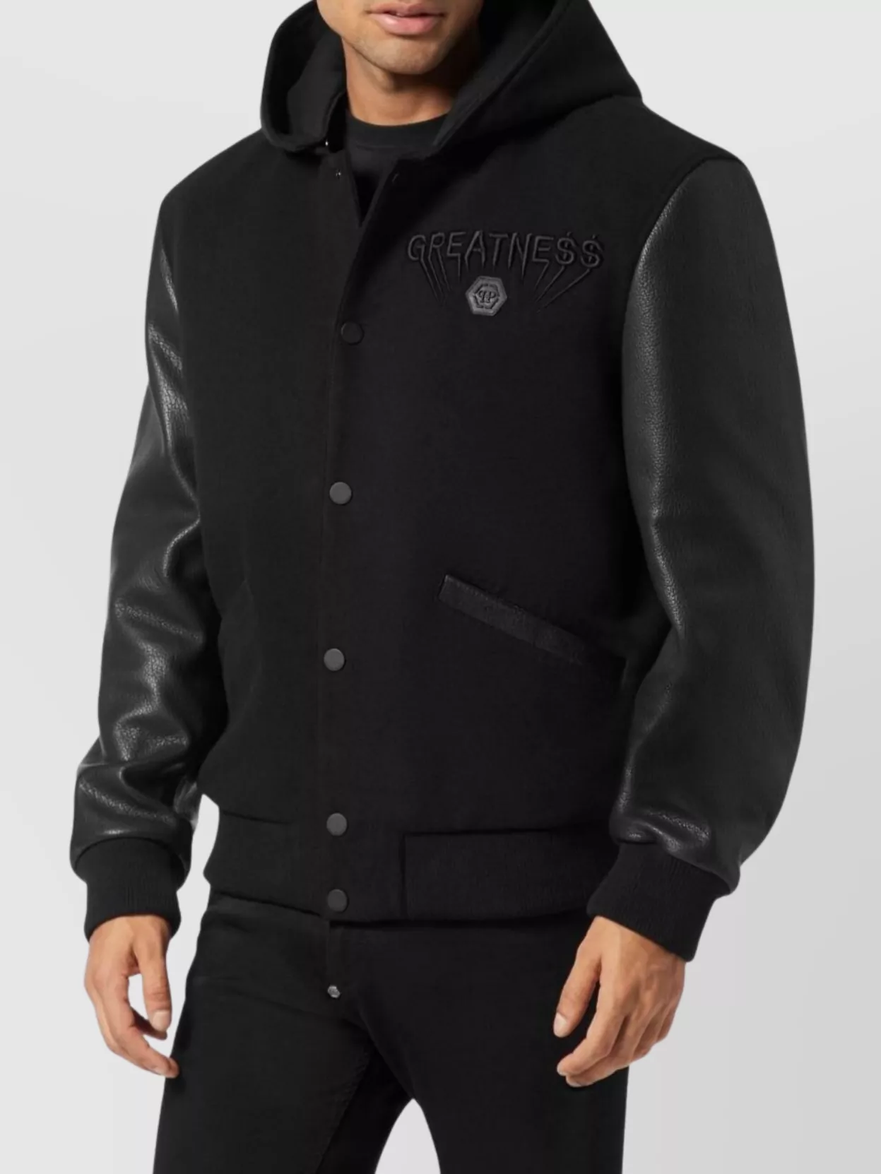 Philipp Plein logo bomber jacket with hood and leather sleeves