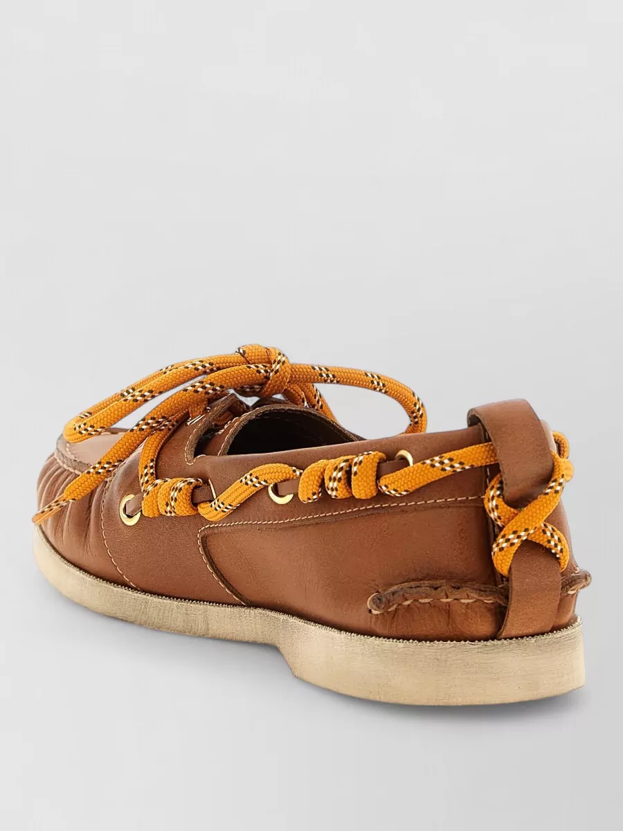 leather boat loafer contrast laces rubber sole