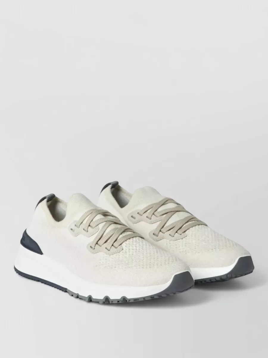 Brunello Cucinelli sneakers knit upper suede inserts pull tab
