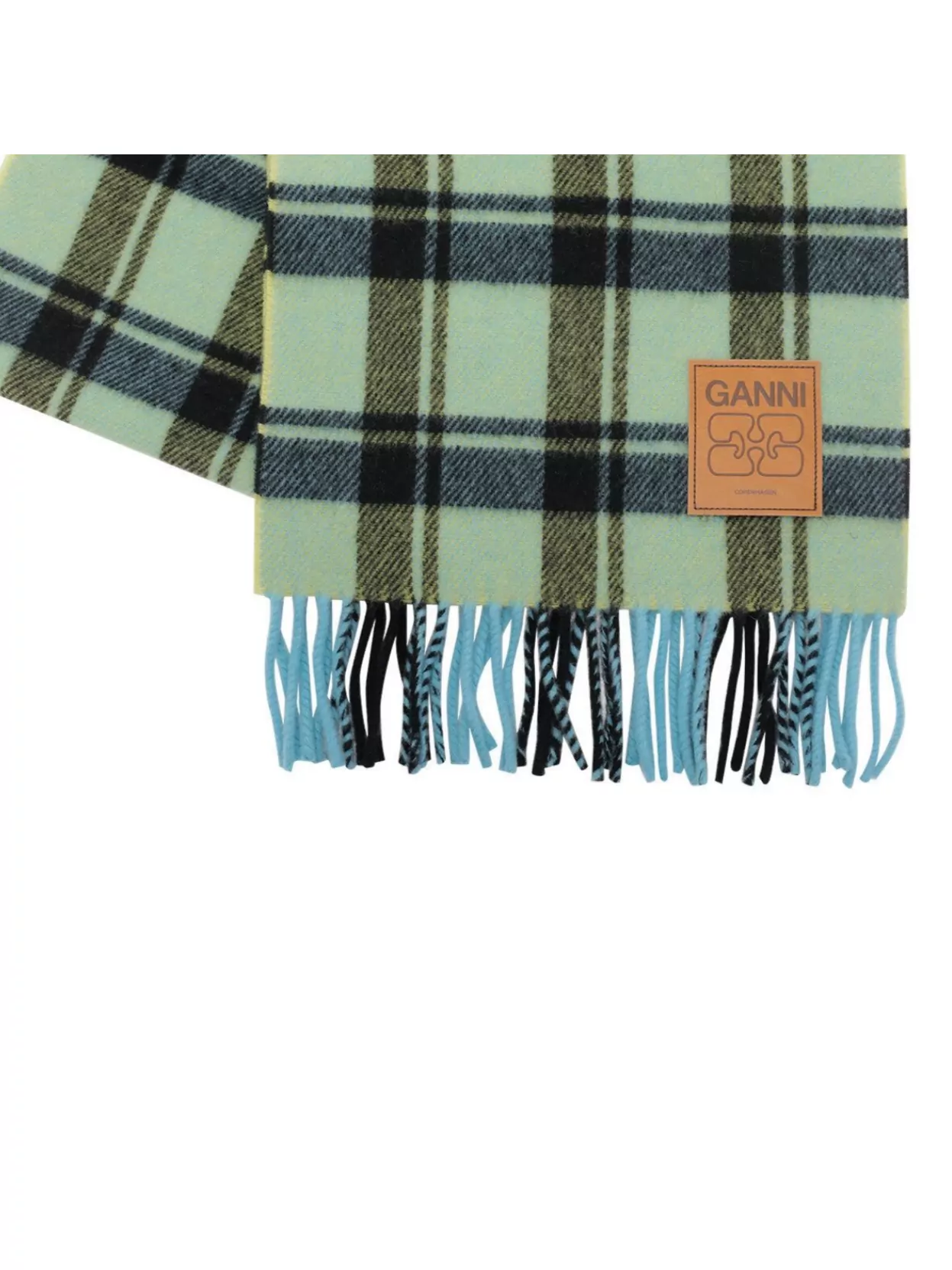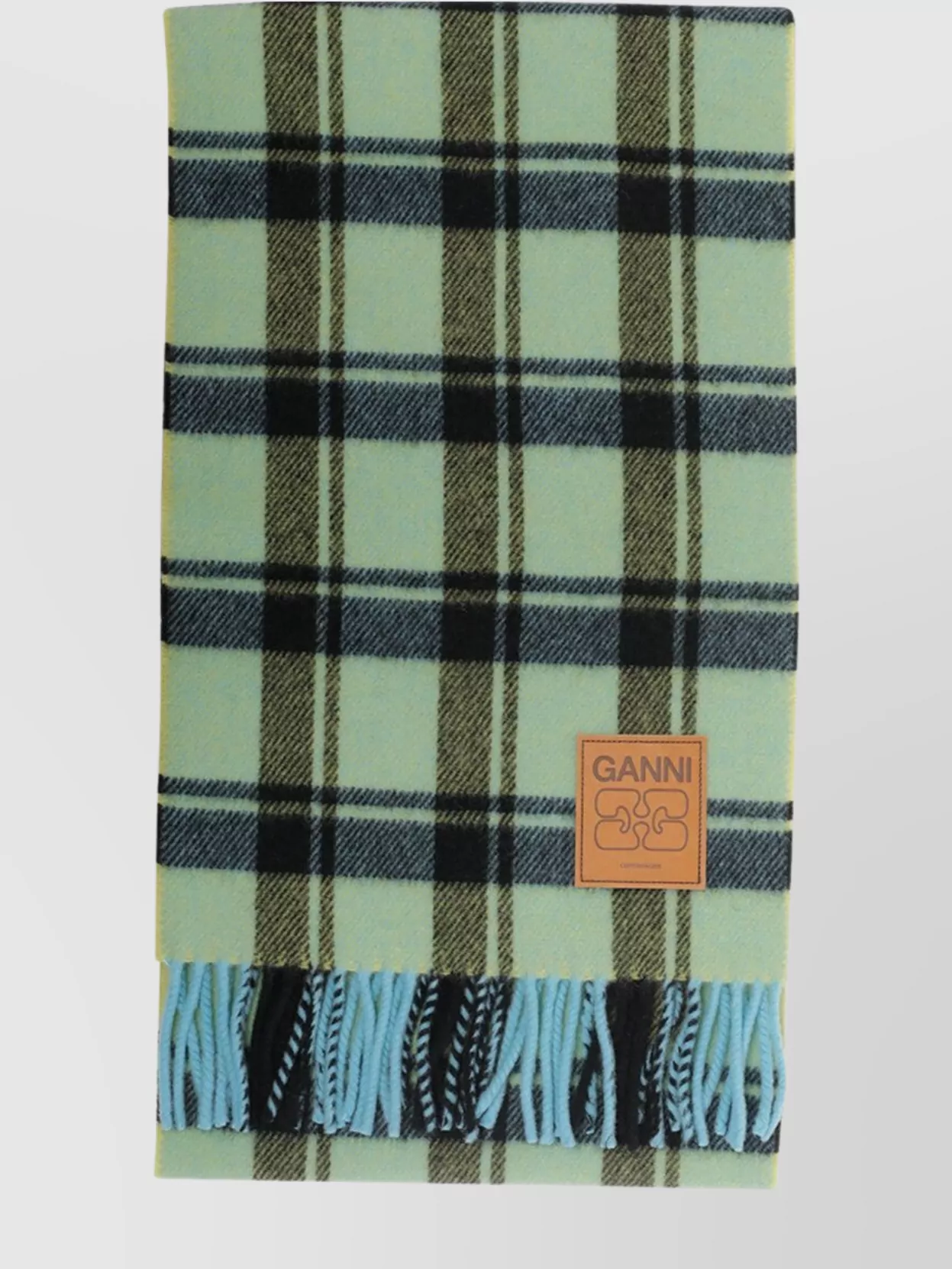 Ganni fringed plaid pattern scarf accessory